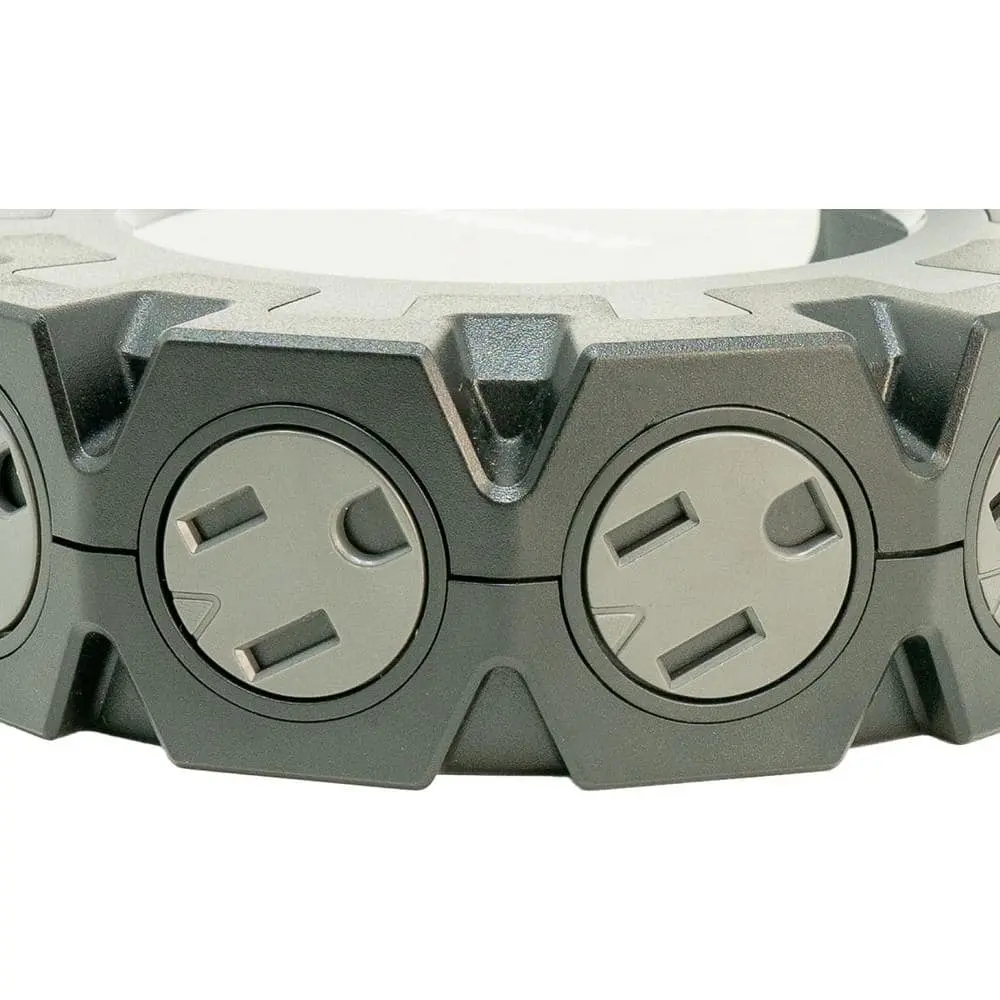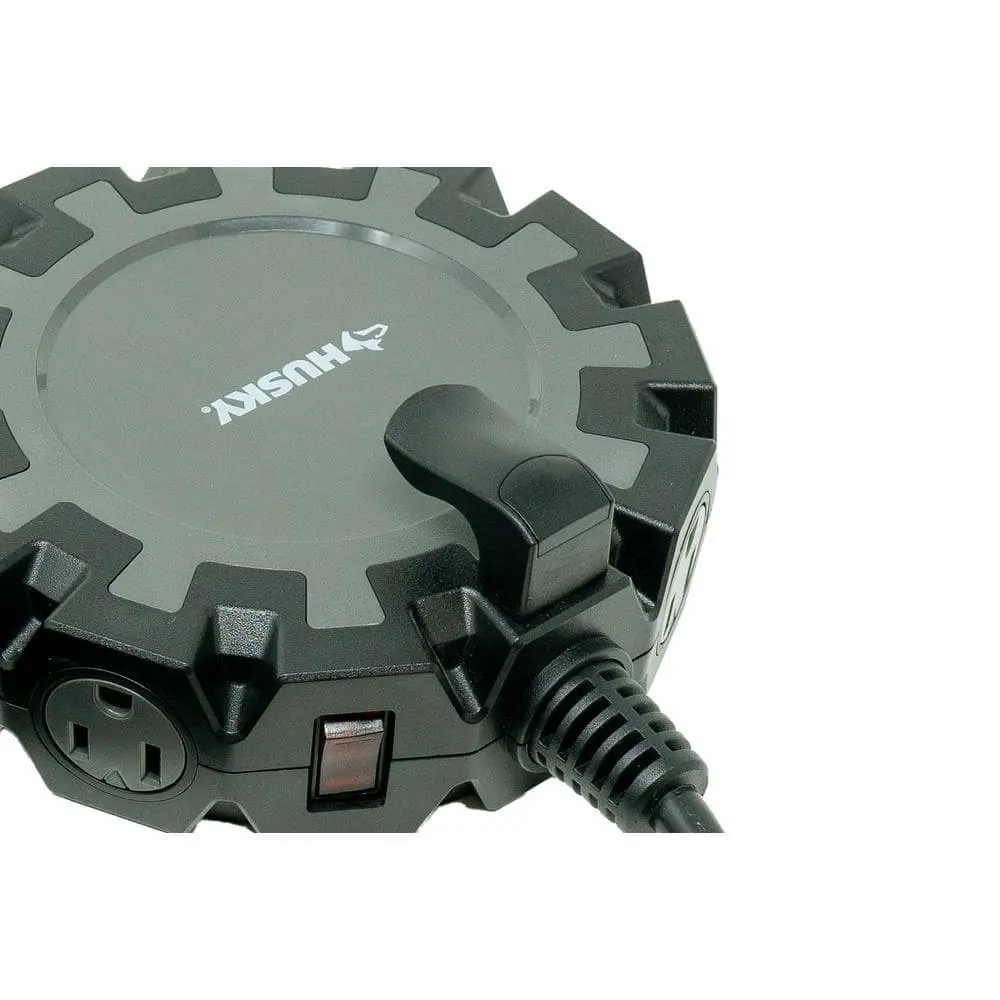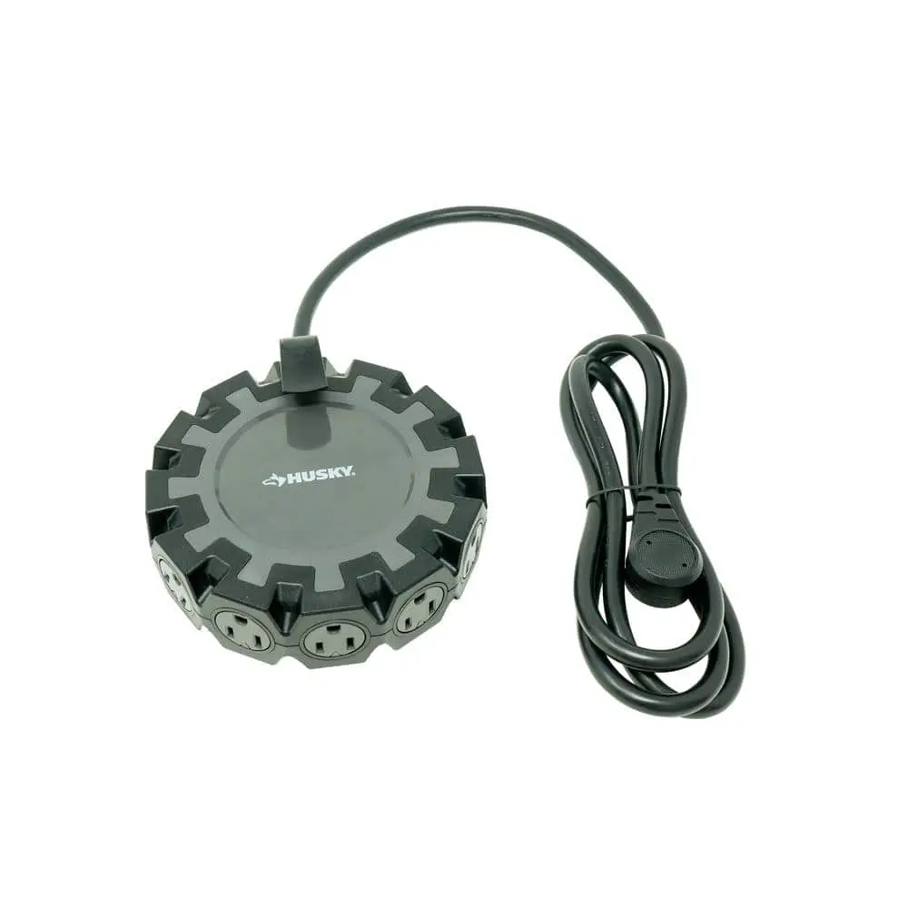 The Husky 14/3 Heavy Duty 10-Outlet Plug Adaptor Converter features 10 outlets (125-Volt/15 Amp/1875-Watt) arranged in a circular layout with extra spacing to accommodate bulky adapter plugs, making it perfect for workshops or garages. It includes mounting keyholes on the back for easy wall installation. The twist-to-close safety covers provide user-friendly protection, reducing potential electrical hazards for you and your family.