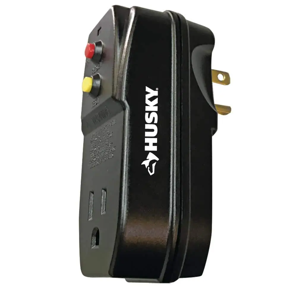 The Husky GFCI Wall Adapter ensures safety and convenience by automatically energizing upon being plugged in or after a power interruption. Ideal for use with electrical tools, sump pumps, shop vacs, and other electrical devices, this adapter provides ground fault circuit protection. It features a power indicator light to confirm power flow and an automatic reset button for hassle-free operation. Designed to safeguard against electrical shock, damaged cords, and leakage.