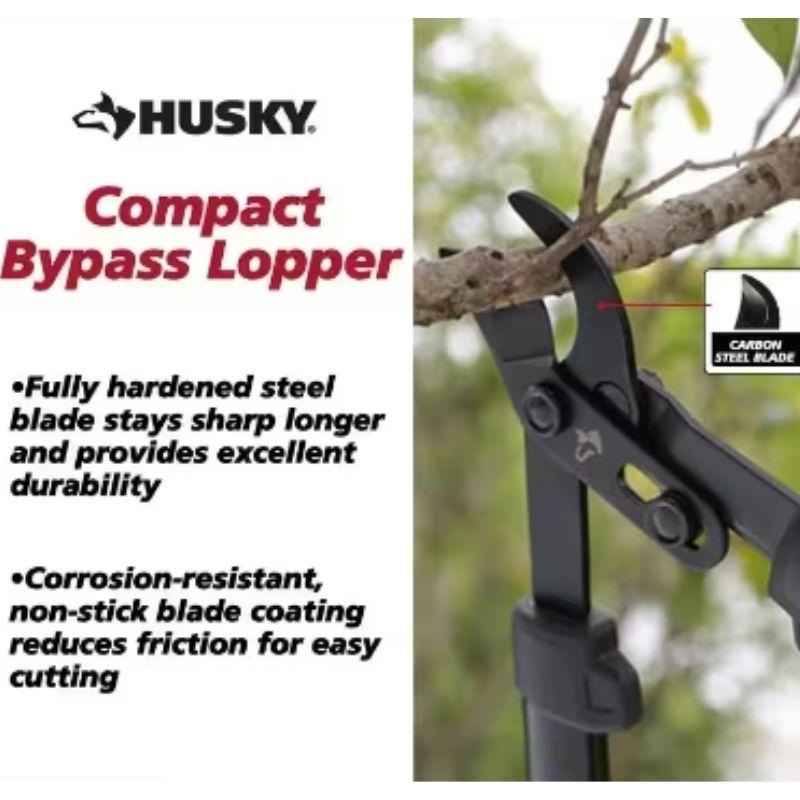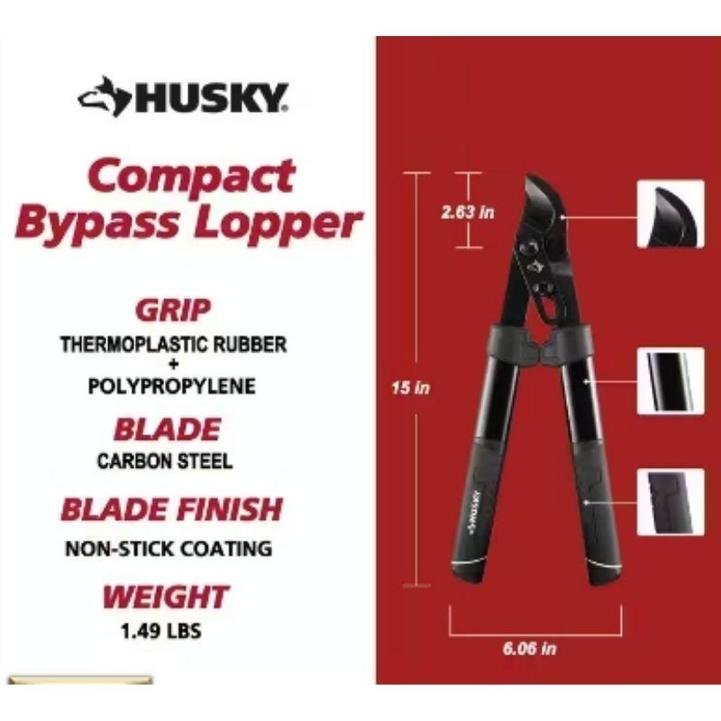The Husky 15 in. Compact Bypass Lopper is a durable, precision tool designed for pruning. It features 15-inch handles for easy maneuverability, a bypass blade mechanism for clean cuts, and ergonomic handles for comfort. Ideal for cutting branches up to 1 to 1.5 inches thick, it offers efficiency and control for various gardening tasks. Dimensions Blade Length (in.):15 in Handle Length (in.):5 in Product Depth (in.):1.11 in Product Height (in.):15 in Product Width (in.):6.06 in Details Blade cutting type:Bypass Blade Material:Carbon Steel Cutting capacity (in.):1.2 Features:Bypass Blade Garden Tool Handle Style:Long Handle Handle Material:Plastic Maximum Cutting Thickness (in.):1.5 in Product Weight (lb.):1.489 lb