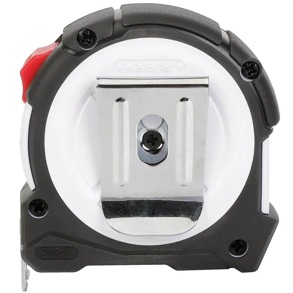The Husky 16FT Tape Measure features a 1-1/8 in. W blade for enhanced visibility and offers an impressive reach of up to 12 feet. Its soft rubber cover ensures comfortable gripping. This tape measure is equipped with Nylon blade protection for durability and an impact-resistant reinforced frame that extends its lifespan. Printed fractional graduations on the tape blade facilitate quick measurements, while the high-contrast printing blade color ensures excellent readability in any situation