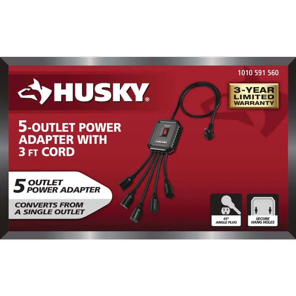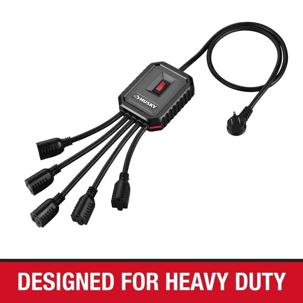 The Husky 3 ft. 5-Outlet Power Squid Adapter is perfect for powering tools and electrical devices where flexibility and additional outlets are needed. Its 5 flexible outlets provide a clutter-free way to connect multiple plugs without overcrowding. The adapter also offers overload protection for added safety.