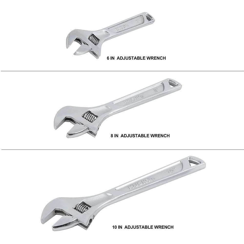 Introducing the versatile 3-piece adjustable wrench set! This set includes three essential sizes: 6-inch, 8-inch, and 10-inch wrenches. With their anti-slip frictionless design, you can expect smooth and hassle-free adjustments for various nuts and bolts. A must-have for professionals and DIY enthusiasts alike, this tool set is designed to make your projects a breeze.