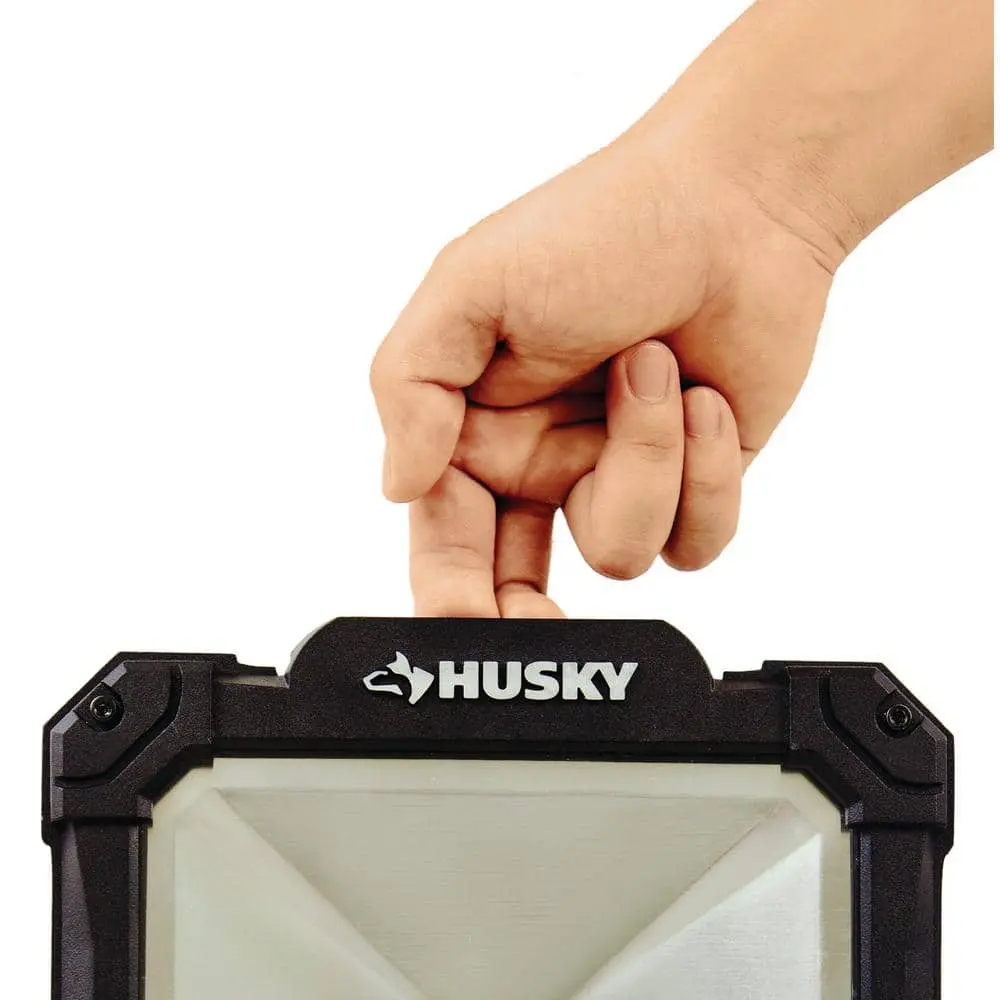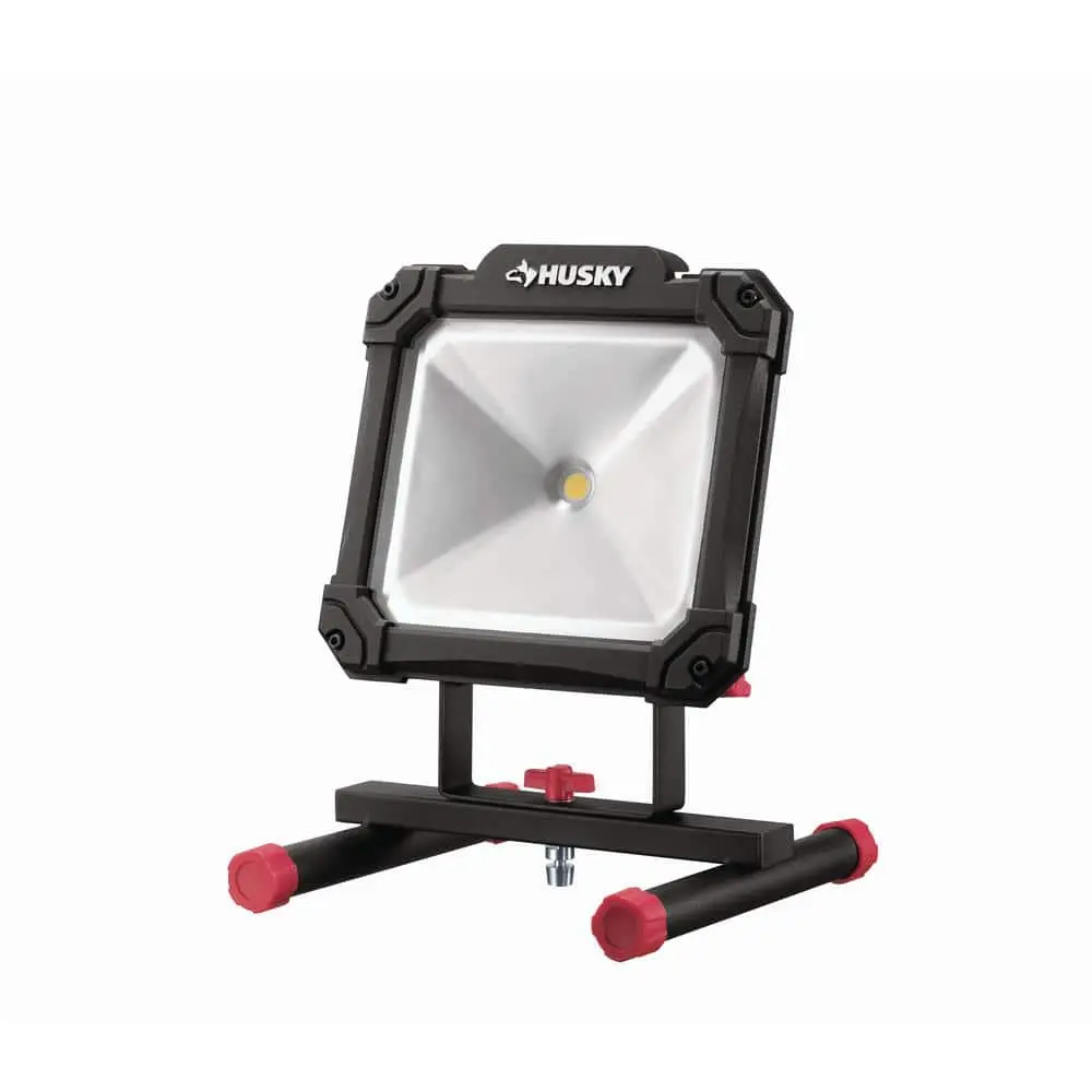 The Husky 3500 Lumen LED Work Light offers versatility for both tripod and handheld use. It delivers bright illumination with a durable, long-lasting LED bulb. When detached from the tripod, the easy-grip handle ensures effortless portability.