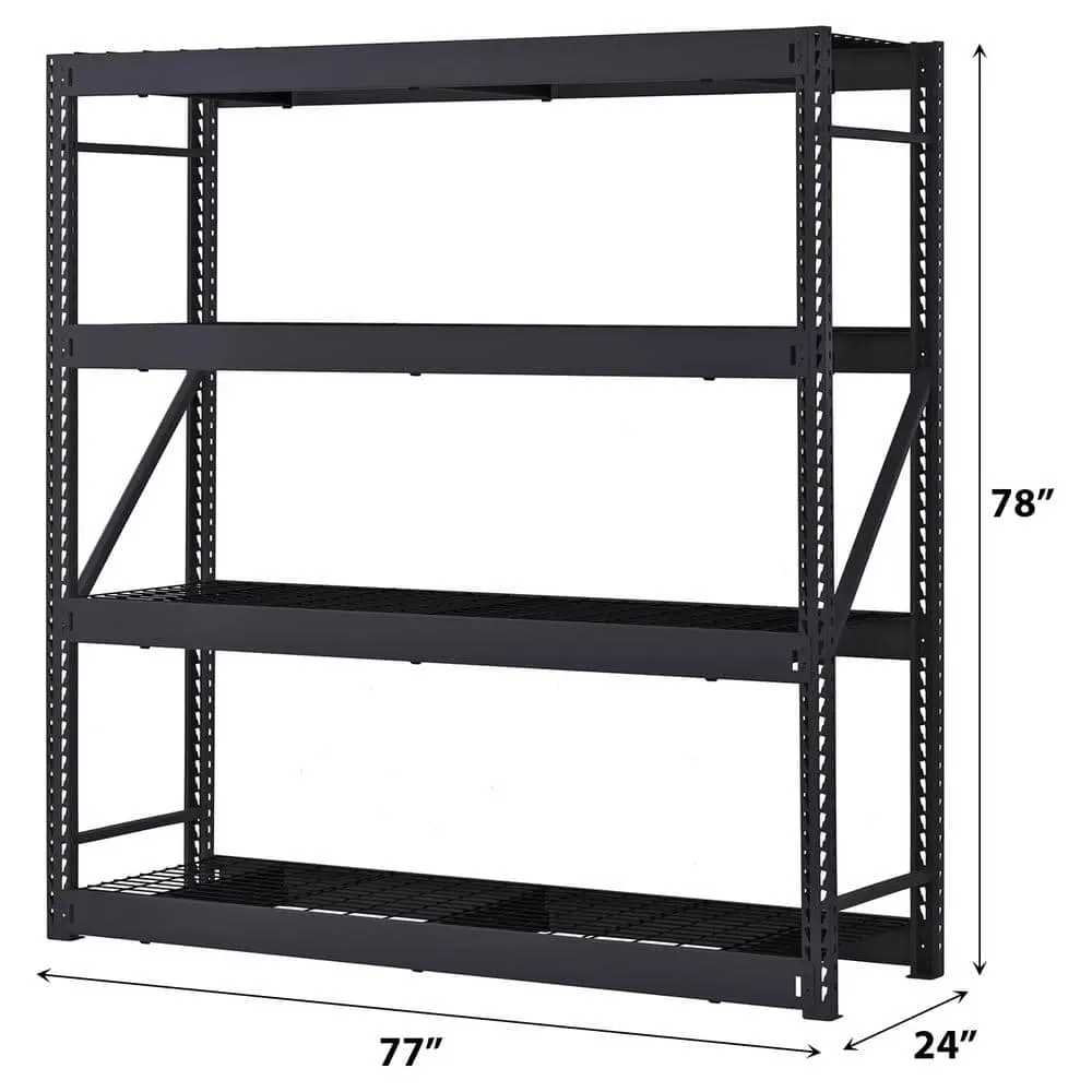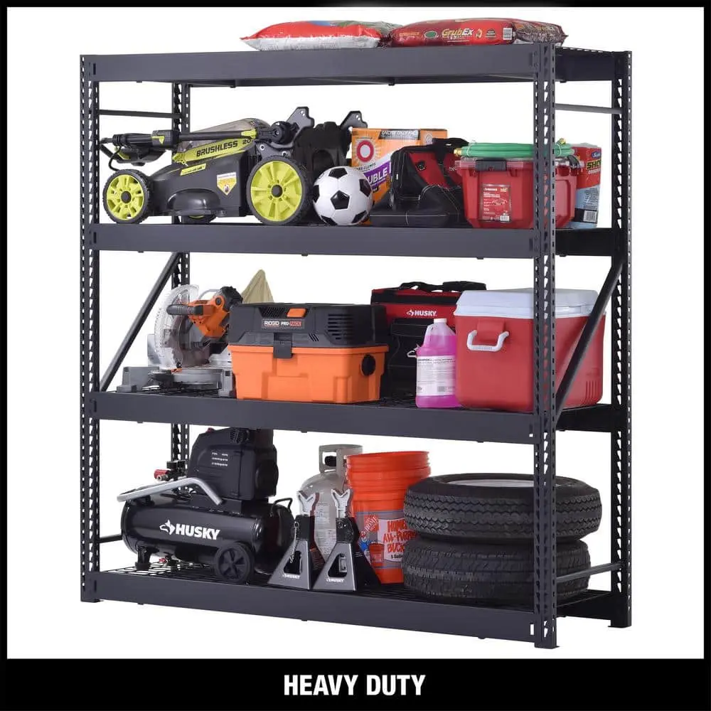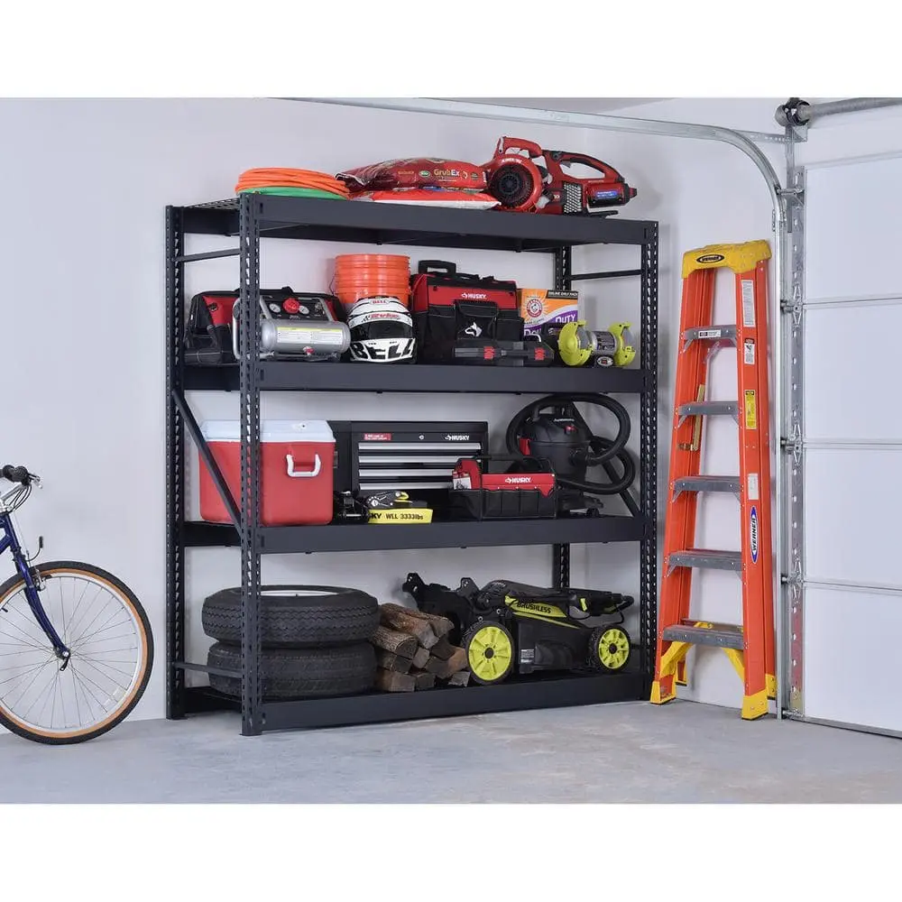 Husky 4-Tier Industrial Duty Steel Freestanding Garage Storage Shelving Unit in Black (77 in. W x 78 in. H x 24 in. D) (N2W772478W4B)