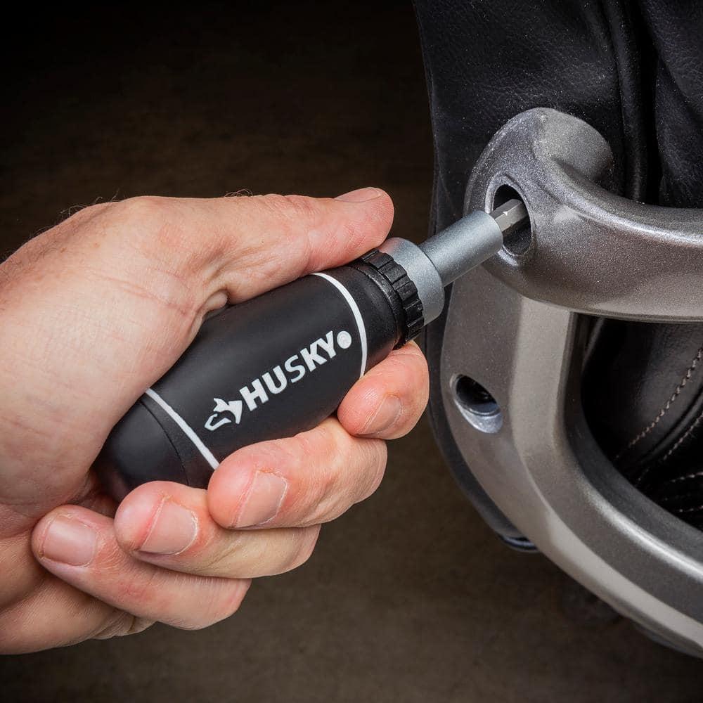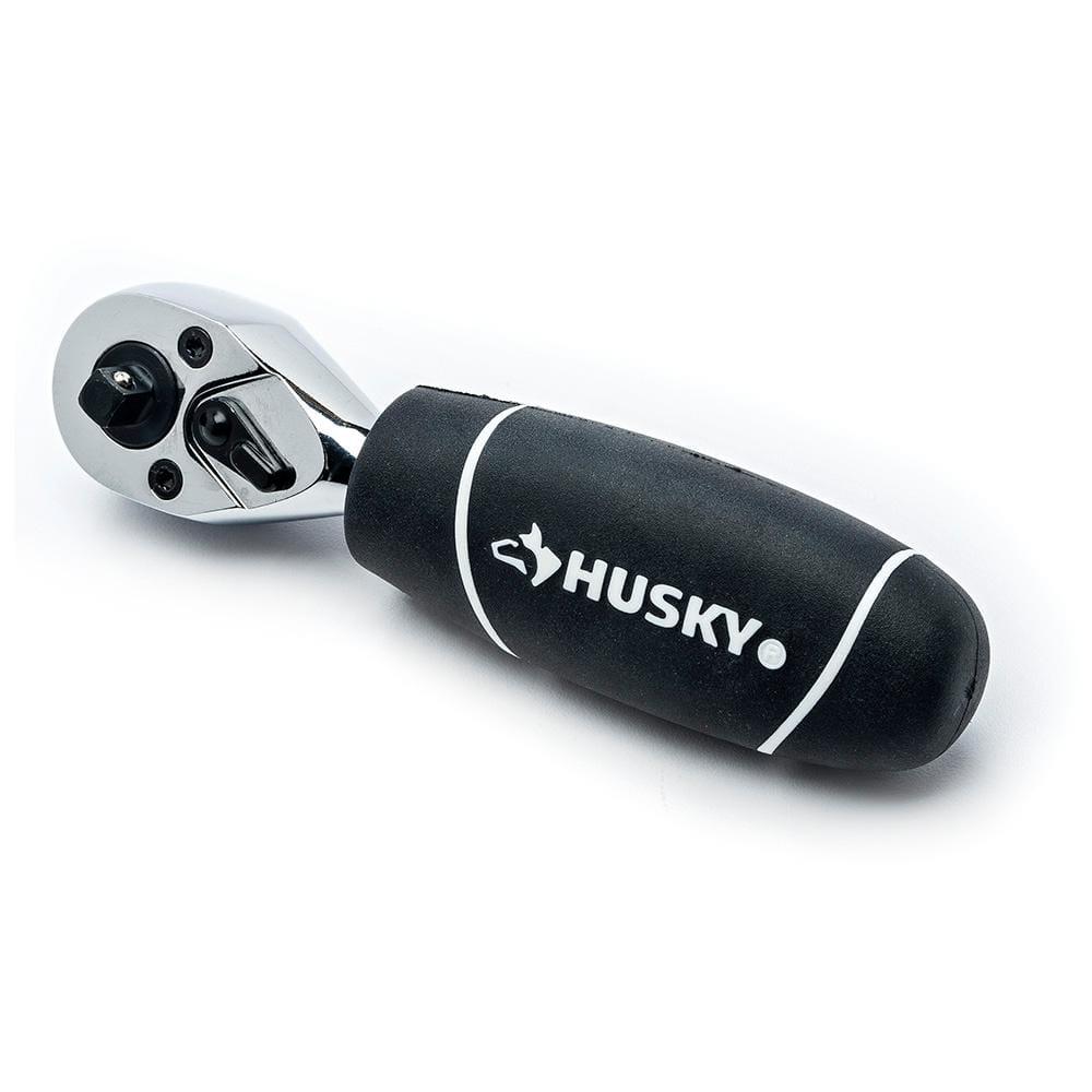 Elevate Your Toolbox with the Husky 46-Piece Stubby Ratchet Set. This comprehensive set includes 22 sockets and 20 screwdriver bits, making it perfect for a wide range of tasks around the house. The innovative stubby ratchet features dual drive tangsa 1/4 in. drive on one side and a 3/8 in. drive on the otheroffering unparalleled versatility in a single tool.The 72-tooth stubby ratchet is designed for precision, requiring only a 5 swing arc to turn fasteners, allowing you to work effortlessly in tight spaces. The co-molded grips on the ratchet, ratcheting bit driver, and adjustable wrench ensure a strong, comfortable hold, making every turn easier. The included Husky magnetic bit driver is compatible with all standard 1/4 in. drive bits, adding further versatility to your toolkit.Keep everything organized and ready for travel with the marked plastic storage case, designed to keep your tools neatly arranged and easily accessible. With the Husky 46-Piece Stubby Ratchet Set, youll have the right tools at your fingertips for any job.