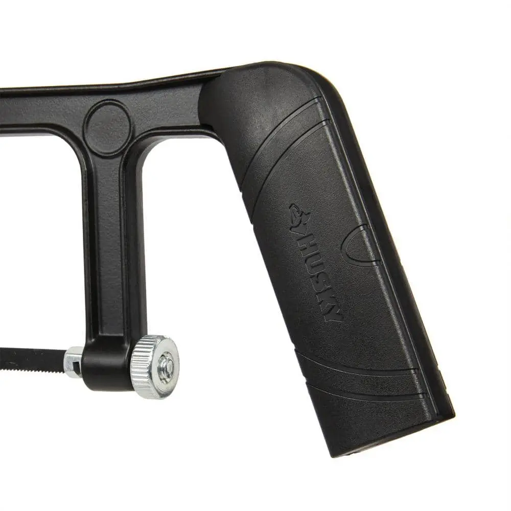 The Husky 6 in. Hack Saw is a compact and efficient tool designed for precision cutting. Its 6-inch blade is perfect for working in tight spaces and tackling detailed tasks. The comfort grip handle ensures a secure and ergonomic hold, reducing hand fatigue during extended use. With its lightweight design, this saw offers excellent maneuverability and ease of use. Built with durable construction, it delivers long-lasting performance, making it ideal for cutting metal, plastic, and various materials with ease