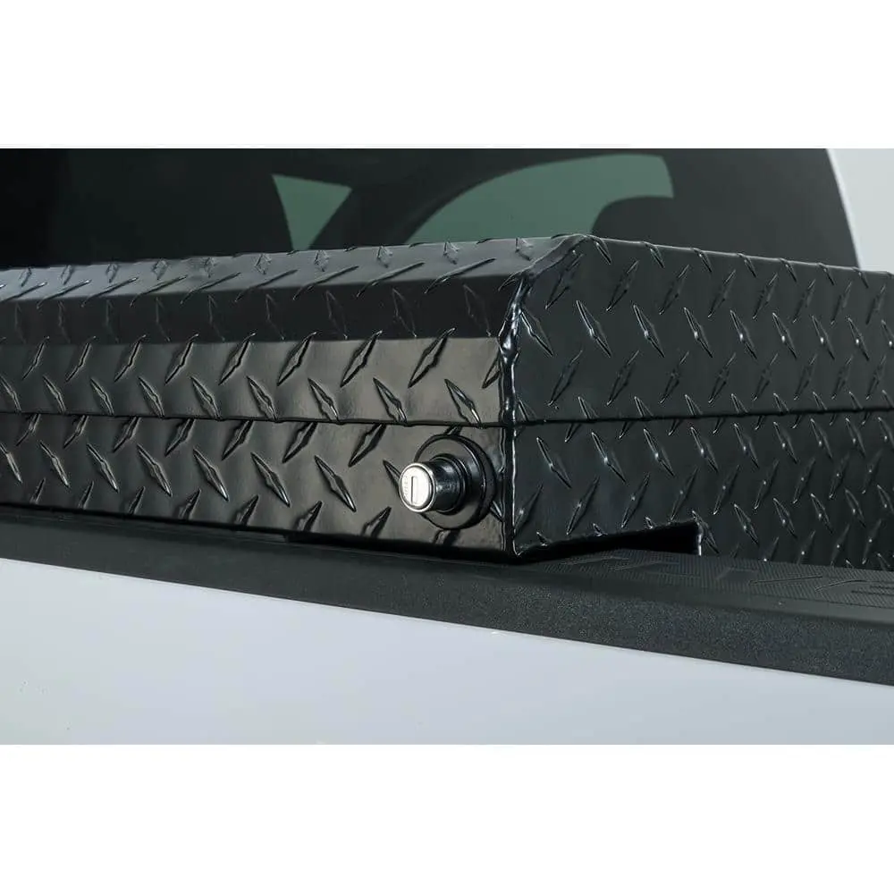 The Husky Aluminum Low Profile Saddle Box for compact trucks offers reliable protection for your tools and equipment against weather and theft. Its fully welded aluminum construction, paired with a rubber weather seal, keeps contents safe from harsh elements. Lockable push buttons and welded loop strikers add an extra layer of security. The box includes a sliding plastic tray for organizing small tools and a no-drill mounting kit for quick and easy installation.