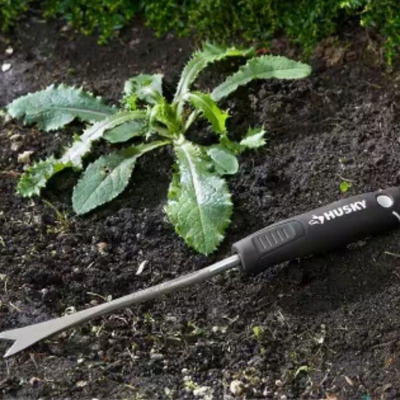 Husky 6.2 in. Double Injection Grip Handle Stainless Steel Hand Weeder Features Blade Material: Stainless Steel: The hand weeder features a blade made from high-quality stainless steel. This material is known for its strength, durability, and resistance to rust and corrosion, ensuring the tool remains effective and easy to maintain over time. Blade Design: Weeding Blade: The blade is typically sharp and pointed or forked to allow for precise removal of weeds, including their roots. This design helps in digging into the soil and extracting weeds efficiently. Handle: Double Injection Grip: The handle is designed with a double injection grip, which combines two different materials or densities for enhanced comfort and control. The grip usually features a soft, ergonomic design that reduces hand fatigue and provides a secure, non-slip hold. Length: The handle is around 6.2 inches (approximately 15.7 centimeters) in length, which provides a comfortable grip for maneuvering and control. Ergonomics: Comfortable Grip: The double injection grip handle ensures that the tool is comfortable to use for extended periods. It helps in reducing strain on your hands and fingers while providing a firm grip. Overall Design: Compact Size: The hand weeder is compact and lightweight, making it easy to handle and maneuver in tight spaces and among delicate plants. Durability: The combination of stainless steel and a well-designed handle makes this tool durable and reliable for regular gardening tasks. Summary The Husky 6.2 in. Double Injection Grip Handle Stainless Steel Hand Weeder is designed to offer effective weed removal with its durable stainless steel blade and comfortable, ergonomic handle. The double injection grip provides added comfort and control, making it a practical tool for gardeners who need to manage weeds efficiently and comfortably.317436443-3