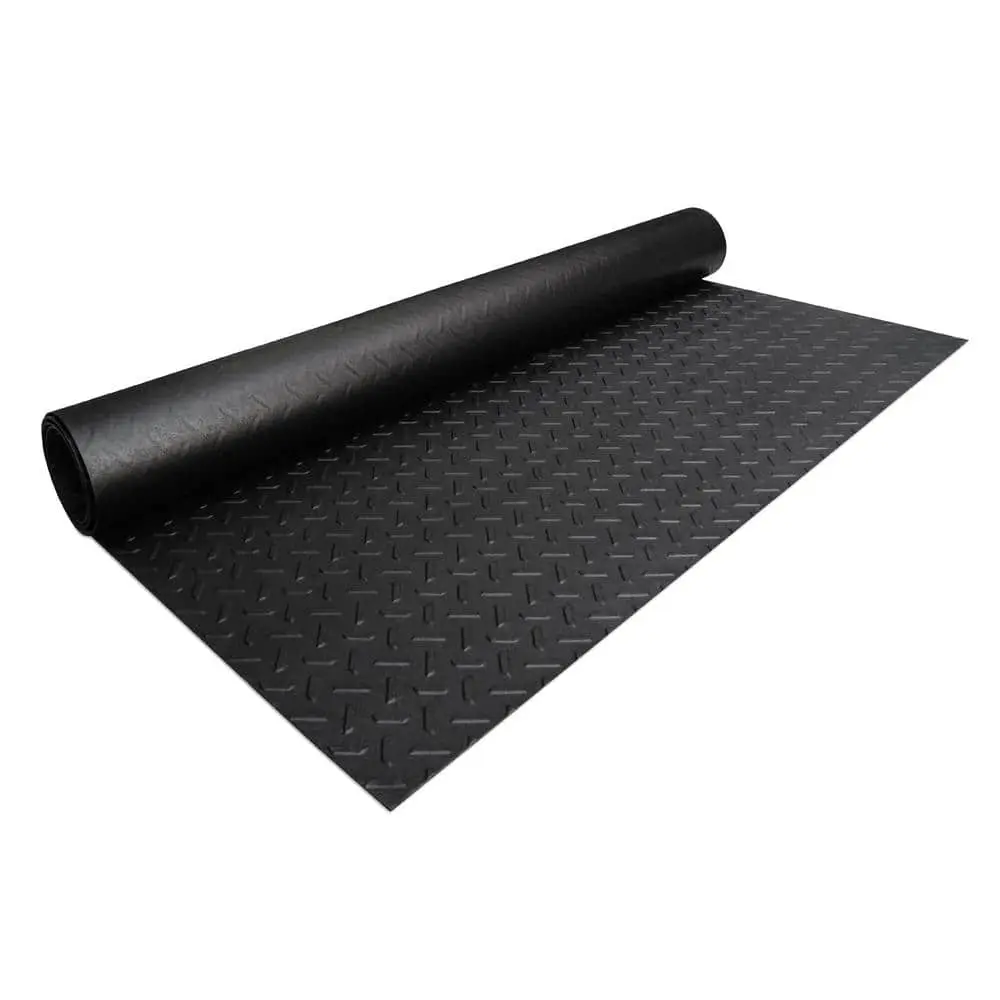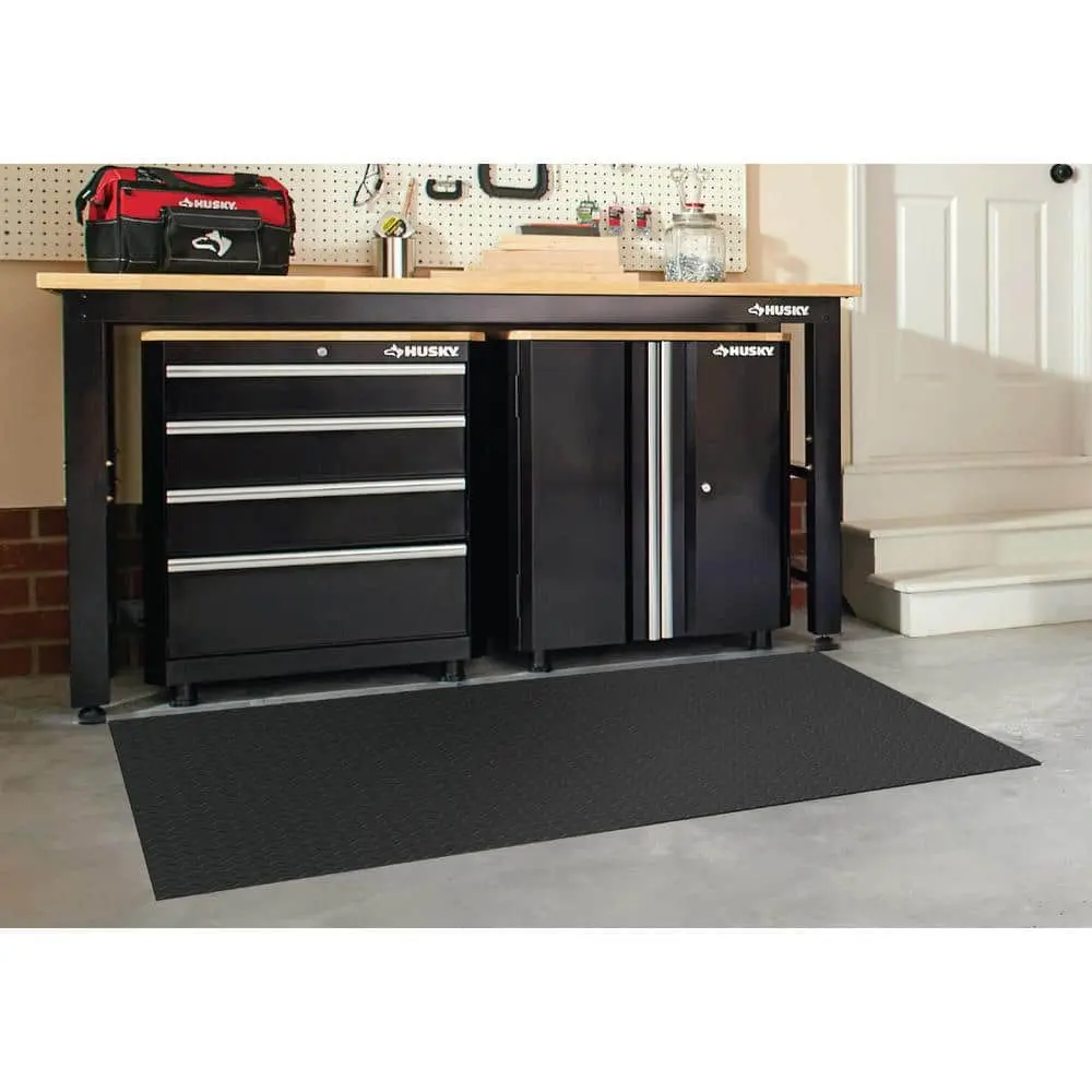 Transform your garage with the Husky Garage Flooring Roll, crafted from durable PVC material to provide long-lasting protection against wear and tear. The diamond plate texture enhances traction and slip resistance, ensuring safety in high-traffic areas. This roll measures 36" x 64", covering 16 sq. ft., and features a 0.11-inch thickness, offering a strong yet thin layer of floor protection. Easy to maintain, the surface is easy to clean, making it a practical choice for any garage. The flooring is also customizable, allowing you to trim it to fit your unique space perfectly. Ideal for garages, this roll is designed to withstand the demands of high-traffic environments