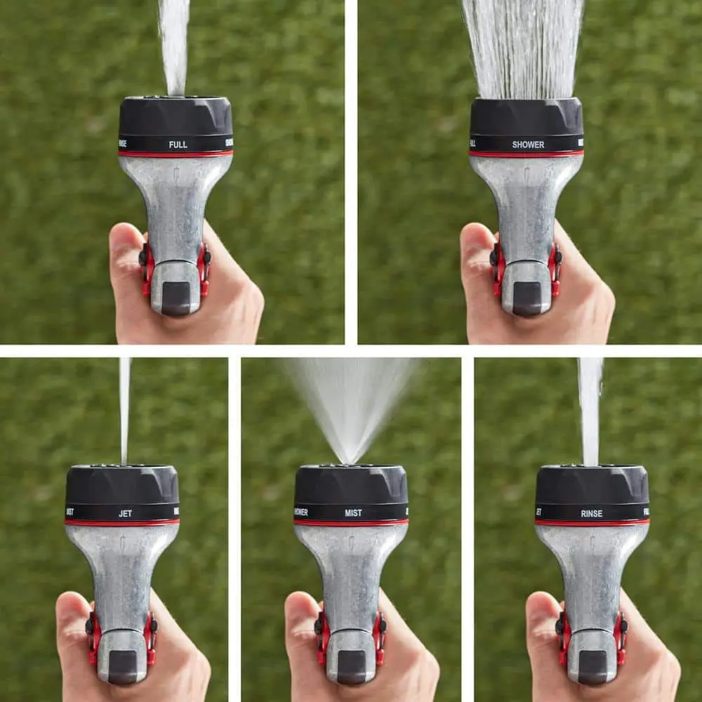 The Husky PRO Rear Trigger Multi-Pattern Nozzle is built for precision and durability, featuring a heavy-duty cast metal construction that ensures long-lasting performance. With five high-flow spray patterns, it offers versatility, allowing you to switch between a gentle shower for delicate plants or a powerful jet stream to tackle dirt and grime. Designed for comfort, the fatigue-reducing handle and slip-resistant grip make it easy to use for any task, while the oversized features add to its convenience. The ambidextrous push-button trigger lockout makes it suitable for both left and right-handed users, and the innovative flow control dial allows for on-the-fly adjustments to water pressure. The Husky PRO Rear Trigger Multi-Pattern Nozzle is an upgrade that meets all your watering and cleaning needs.