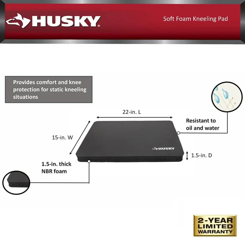 The Husky Large Kneeling Pad is built for versatile use across various job sites, both indoors and outdoors. Whether working on cold ground, steel, concrete, or wet surfaces, this pad offers superior comfort and knee protection during prolonged kneeling tasks. Constructed with thick NBR closed-cell foam, it retains its shape over time without absorbing liquids. Its durable design resists oil and water, making it ideal for garages, gardens, and home projects. The pad helps safeguard against common knee injuries by supporting knees and joints.