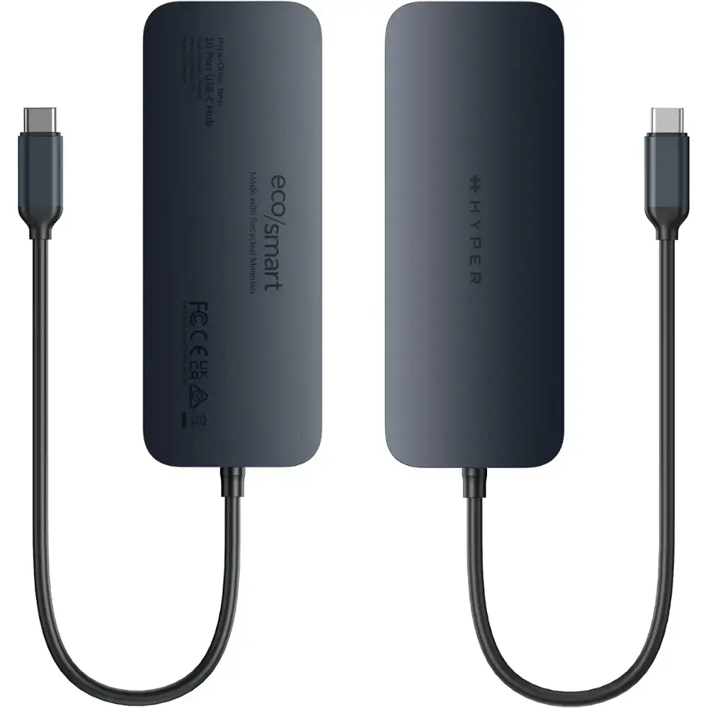 Introducing the HyperDrive Next 10-Port USB-C Hub – the ultimate connectivity solution for creators, editors, photographers, and more. With extended 4K 60Hz monitor support for Mac, PC, and Chromebook, 10 ultra-fast ports, and lightning-fast data transfers, this hub allows you to unleash your creative potential anywhere. Enjoy 2X faster file transfers with 10Gbps USB ports and 3X faster photo and video transfers with microSD and SD 4.0. Plus, benefit from 40% more power with the PD 3.1 140W power pass-through port, ensuring efficient charging. Make a sustainable choice with EcoSmart technology.