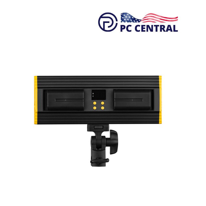 A two-digit LED screen is shared for dimming and color temp, with an indicator light informing you of which characteristic you are controlling. The fixture requires two L-series batteries, and ships with two batteries that are the equivalent of a 550 L-series battery and a dual battery charger.