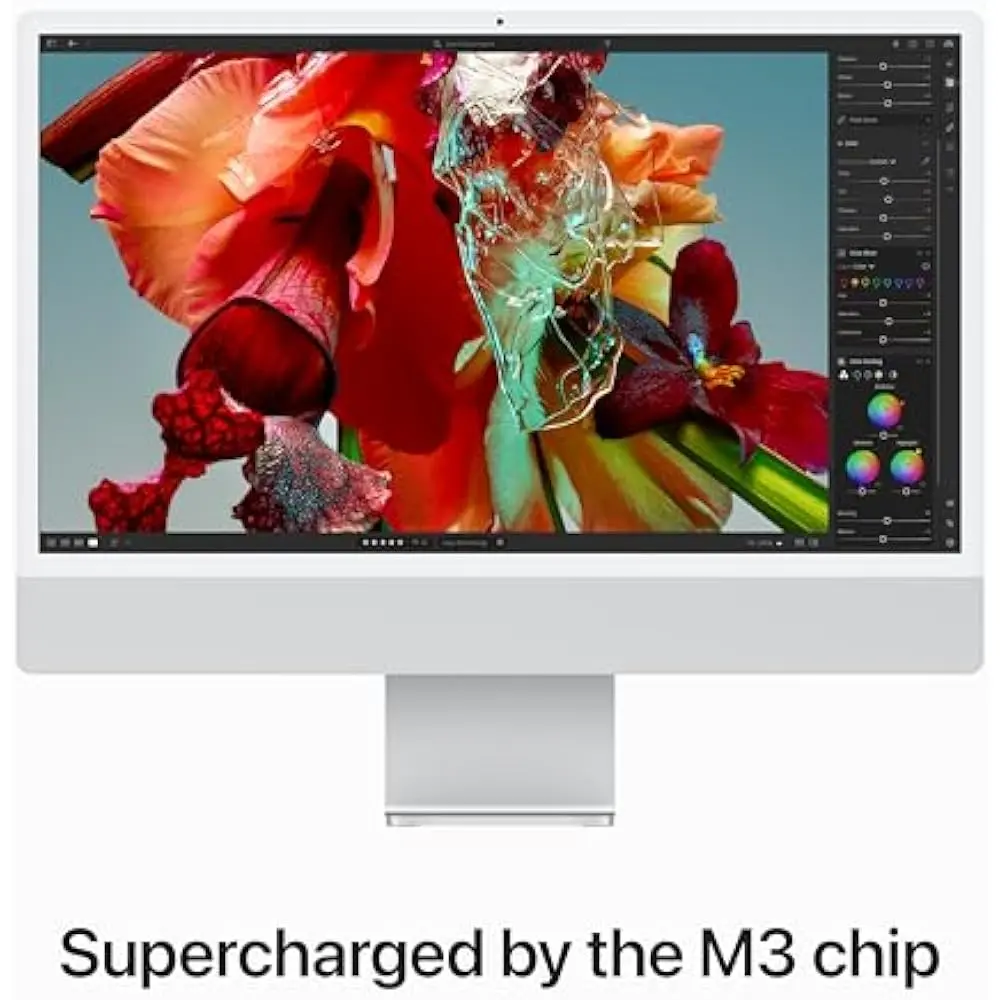 The 2023 Apple iMac with Apple M3 Chip offers cutting-edge performance with its 8-core CPU, making it perfect for both professional tasks and personal use. The 24-inch Retina Display with 4.5K resolution provides vivid, crystal-clear visuals for an enhanced viewing experience. With 8GB RAM, the iMac ensures smooth multitasking, while the 512GB SSD Storage offers fast access to your data and ample space for your files. The integrated GPU delivers superior graphics performance, perfect for creative work and entertainment. The 1080p FaceTime HD Camera ensures crisp, high-quality video calls, complemented by built-in stereo speakers for immersive sound. Powered by macOS, this iMac provides a seamless and intuitive user experience. With Wi-Fi 6 and Bluetooth 5.0 connectivity, you can stay connected at top speeds. Finished in Silver, it adds a sleek and modern touch to any workspace, and its Renewed to offer a like-new experience with reliable performance.