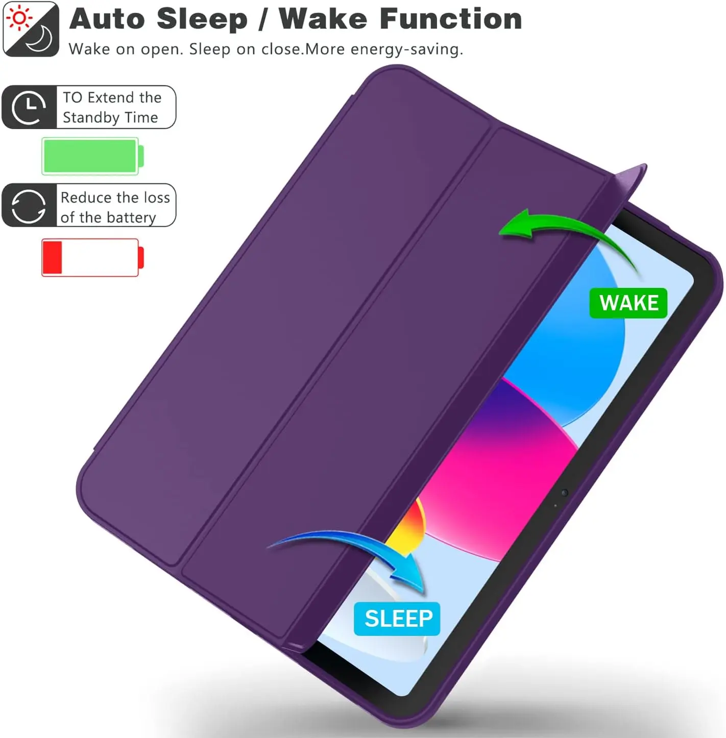 iMieet Case for New iPad 10.9 Inch (10th Gen, 2022) - Trifold Stand with Pencil Holder, Soft TPU Back, and Auto Wake/Sleep (Dark Purple)