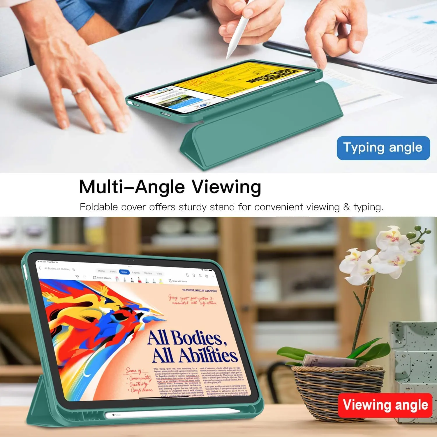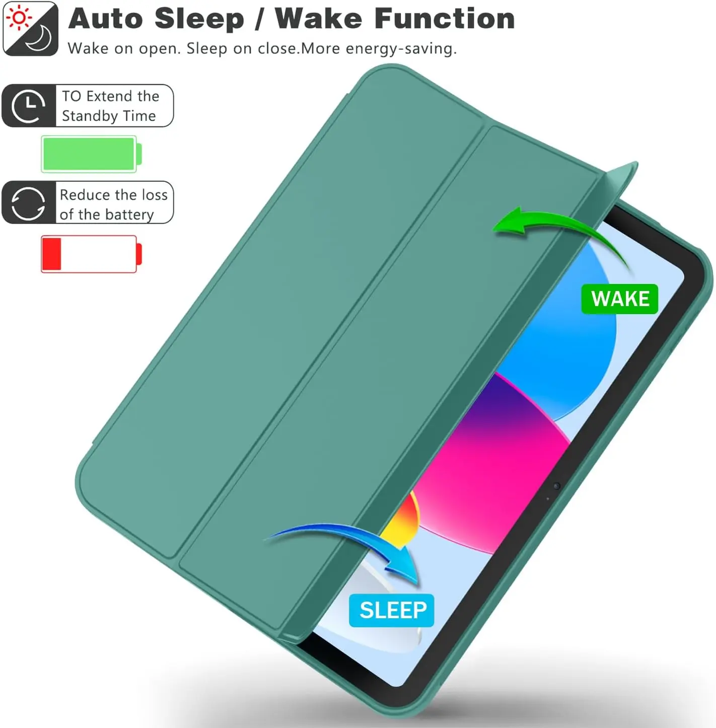 iMieet Case for New iPad 10.9 Inch (10th Gen, 2022) - Trifold Stand with Pencil Holder, Soft TPU Back, and Auto Wake/Sleep (Forest Green)