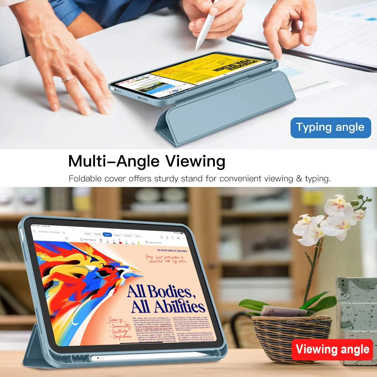 iMieet Case for New iPad 10.9 Inch (10th Gen, 2022) - Trifold Stand with Pencil Holder, Soft TPU Back, and Auto Wake/Sleep (Light Blue)
