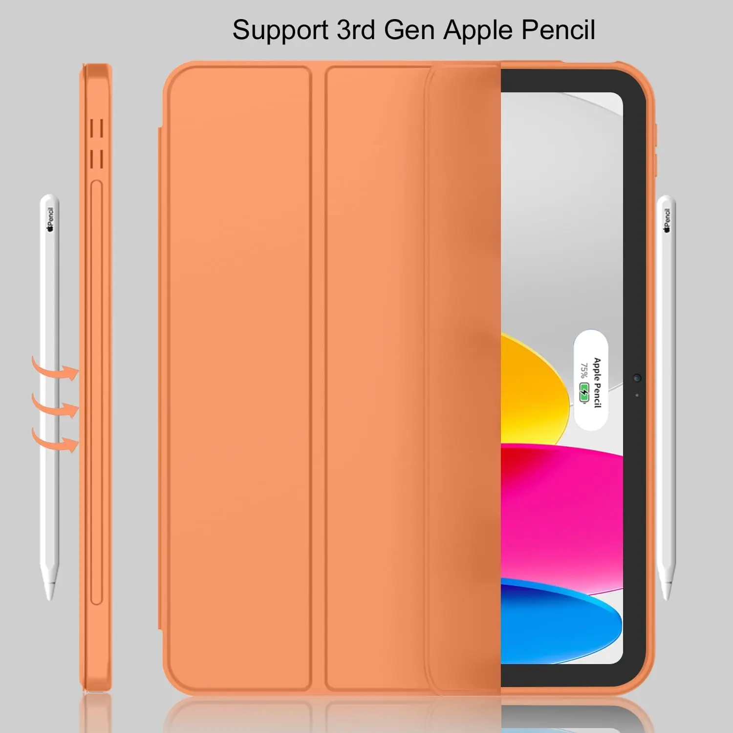 iMieet Case for New iPad 10.9 Inch (10th Gen, 2022) - Trifold Stand with Pencil Holder, Soft TPU Back, and Auto Wake/Sleep (Orange)