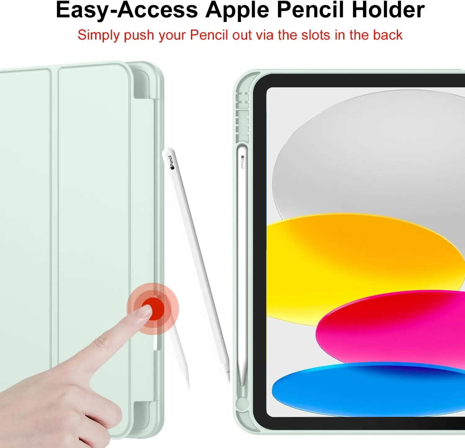 iMieet Case for New iPad 10.9 Inch (10th Gen, 2022) - Trifold Stand with Pencil Holder, Soft TPU Back, and Auto Wake/Sleep (Pale Green)