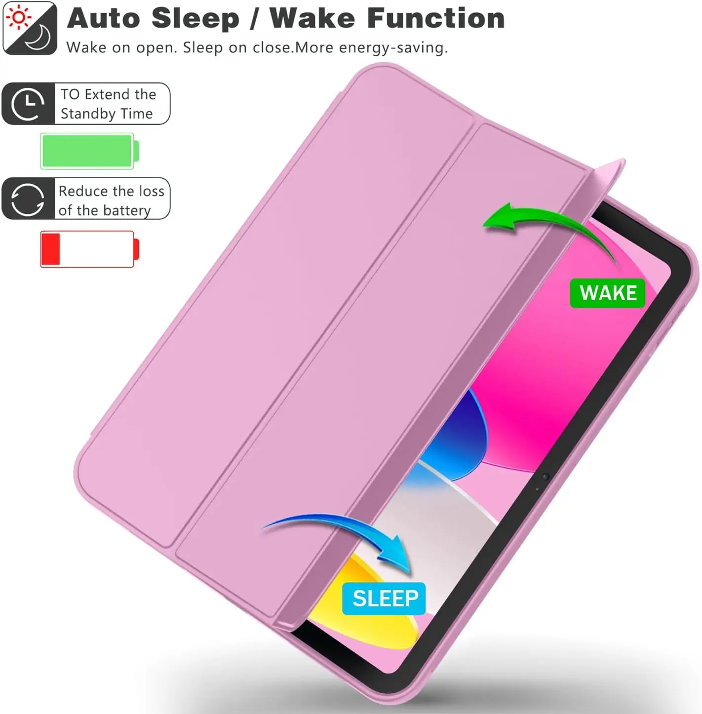 iMieet Case for New iPad 10.9 Inch (10th Gen, 2022) - Trifold Stand with Pencil Holder, Soft TPU Back, and Auto Wake/Sleep (Pastel Violet)
