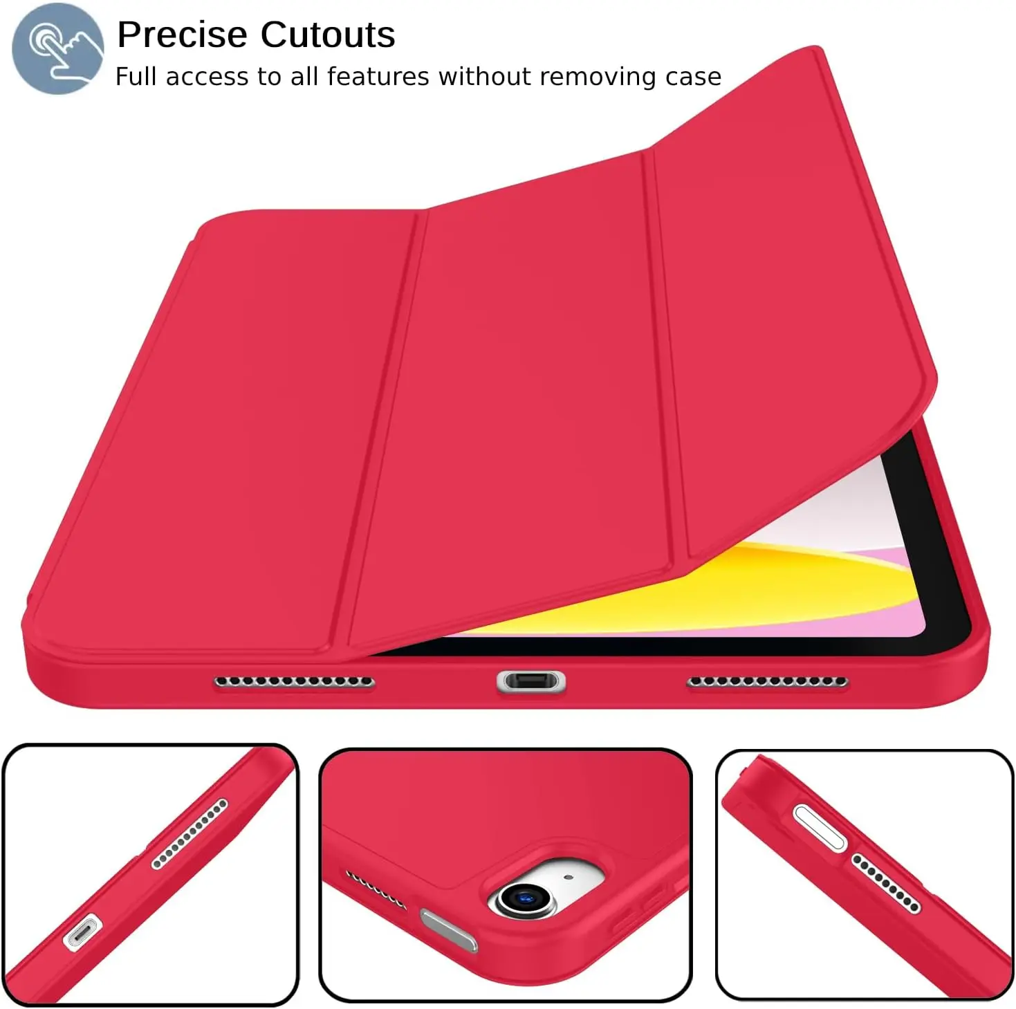 iMieet Case for New iPad 10.9 Inch (10th Gen, 2022) - Trifold Stand with Pencil Holder, Soft TPU Back, and Auto Wake/Sleep (Red)