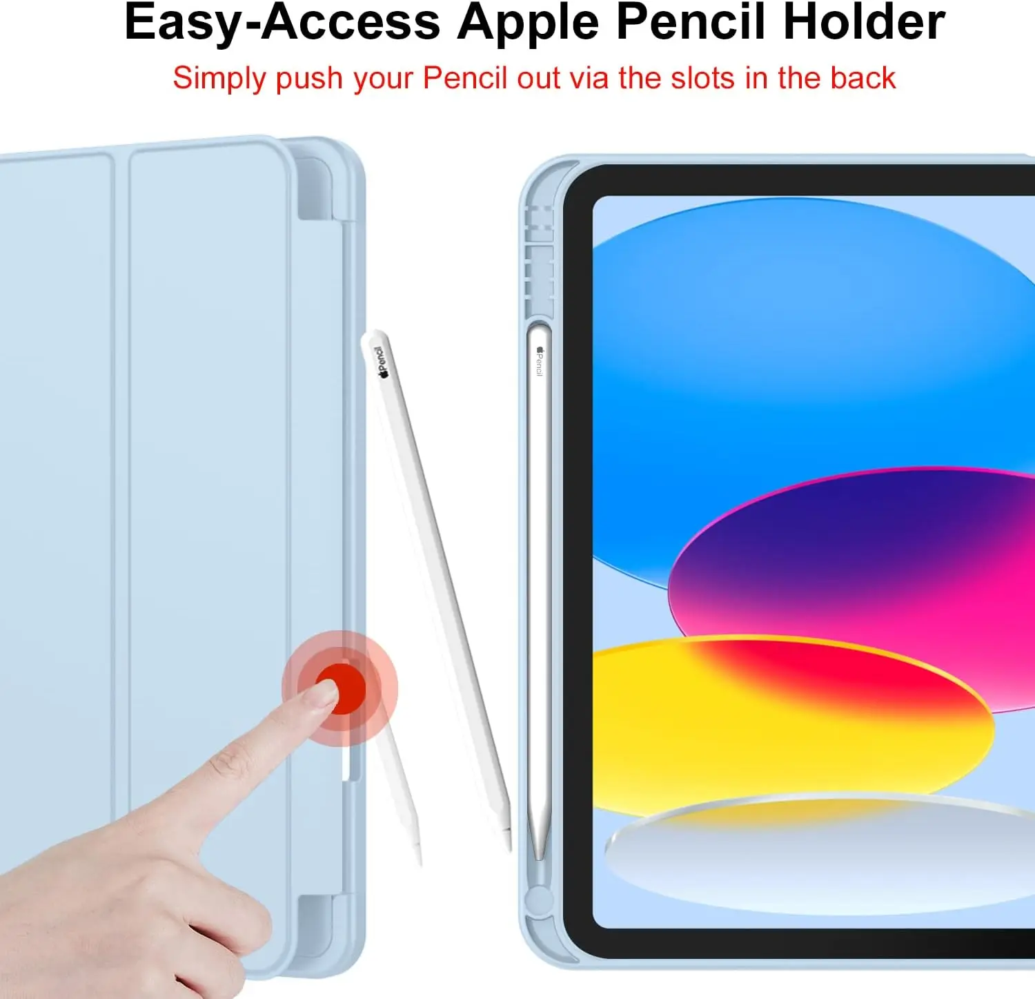 iMieet Case for New iPad 10.9 Inch (10th Gen, 2022) - Trifold Stand with Pencil Holder, Soft TPU Back, and Auto Wake/Sleep (Sky Blue)
