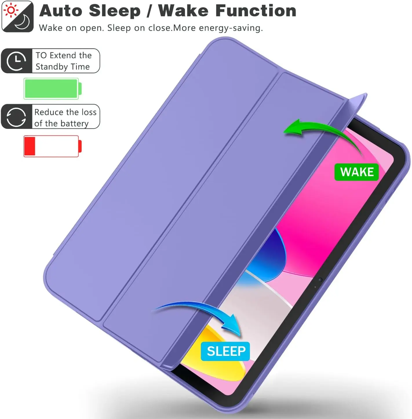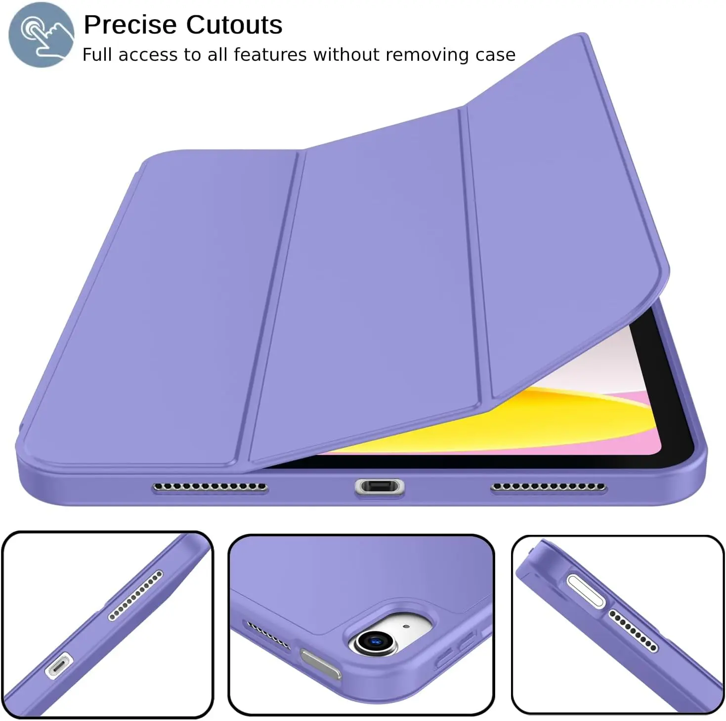 The iMieet New iPad 10.9 Inch Case (10th Gen, 2022) features a slim and lightweight design made from durable TPU material, ensuring protection from scratches and bumps. It is compatible exclusively with the iPad 10.9-inch 10th Generation (2022) model and includes a built-in Apple Pencil holder, supporting magnetic attachment and wireless charging. The case has a trifold stand for versatile viewing angles, an auto wake/sleep function, and precise cutouts for easy access to ports and features. Not compatible with other iPad models.