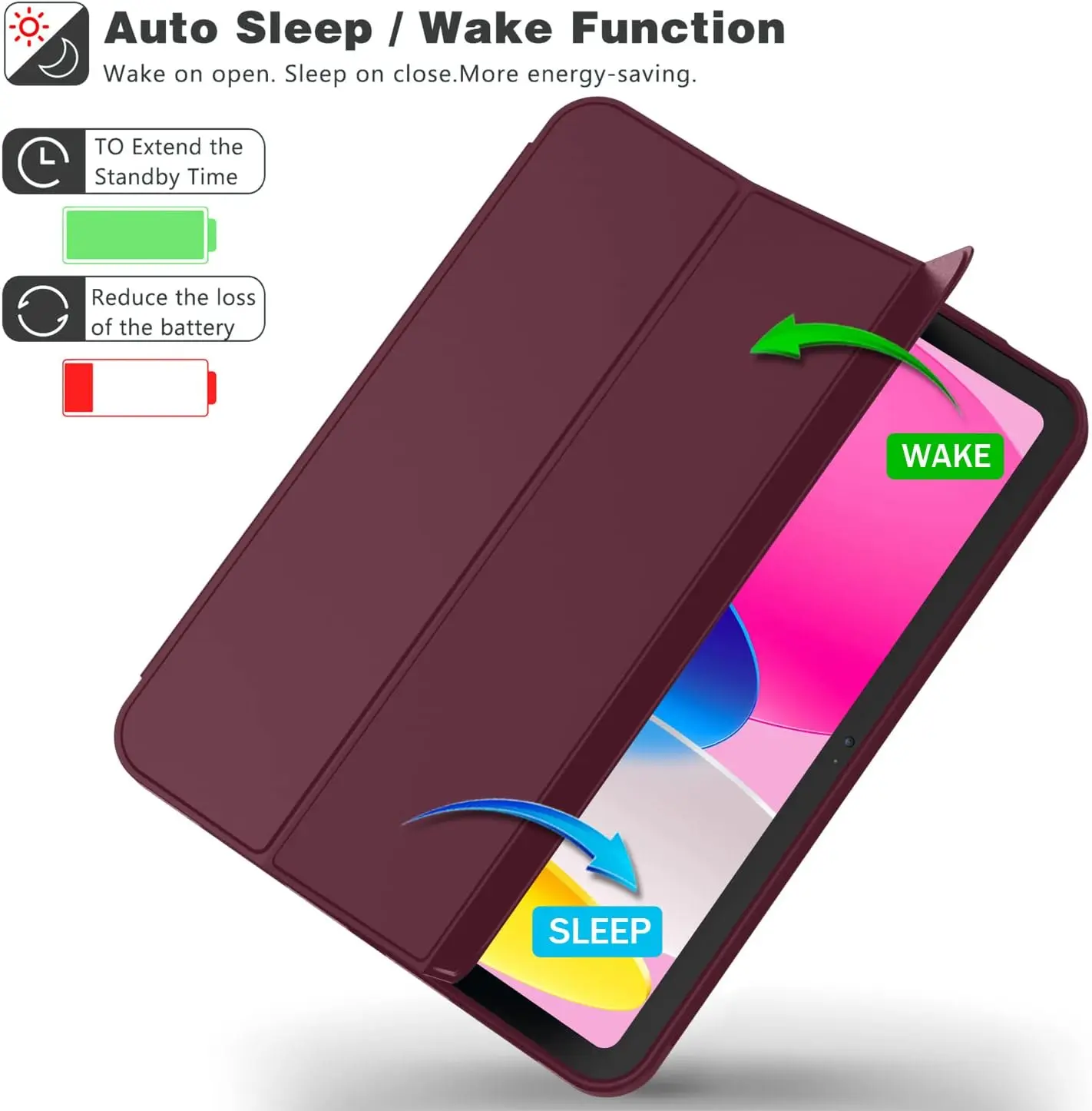iMieet Case for New iPad 10.9 Inch (10th Gen, 2022) - Trifold Stand with Pencil Holder, Soft TPU Back, and Auto Wake/Sleep (Wine)
