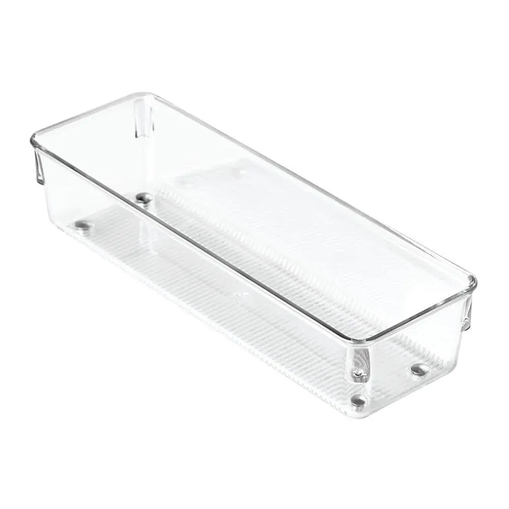 The interDesign Linus Drawer Organizer is a sleek and practical solution for keeping small items neatly stored. Made from durable, clear plastic, it provides a simple, compact design that fits perfectly in drawers, cabinets, or on countertops. This organizer is ideal for sorting utensils, office supplies, and other small items, offering multi-purpose functionality. Its stackable design allows for easy customization and expansion, while the organizer is easy to clean, simply wiping down with a damp cloth to maintain its clarity and appearance