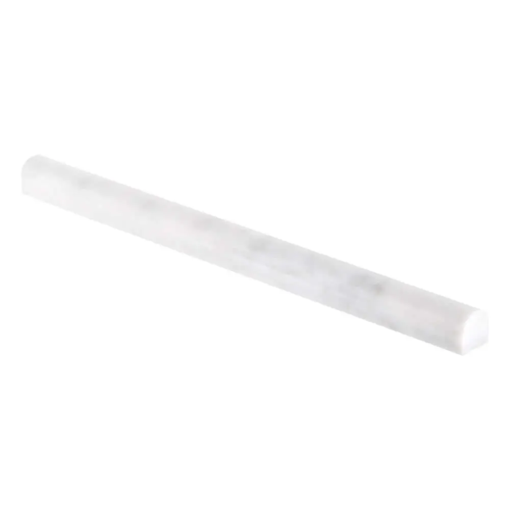 The Jeffrey Court Carrara White .75 in. x 12 in. Honed Marble Wall Pencil Tile offers a sleek and refined finish with its premium honed marble material. The elegant Carrara white color, combined with a stylish pencil edge design, makes it the perfect choice for adding subtle sophistication to any space. Ideal for use as wall trim, accents, or borders, this tile enhances both contemporary and classic interiors. Its durable construction ensures long-lasting beauty, while its easy maintenance makes it simple to clean and keep looking fresh