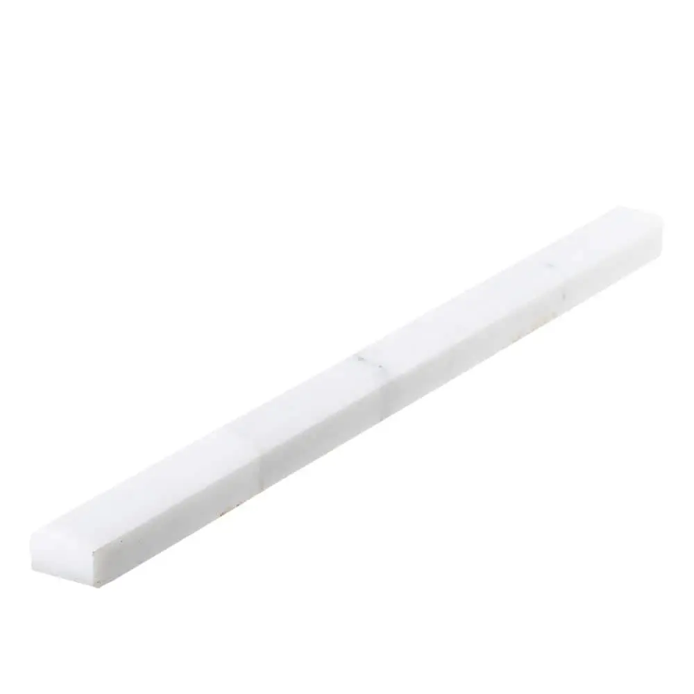 The Jeffrey Court Italian White Carrara .75 in. x 12 in. Honed Marble Wall Pencil Tile offers a refined, timeless appeal with its Italian White Carrara marble construction. The honed finish gives the tile a smooth, matte surface, perfect for creating an elegant, sophisticated look in any room. Measuring .75 in. x 12 in. per tile, it covers 1 linear foot, making it ideal for accentuating walls, backsplashes, or showers. Its luxurious design adds a touch of class to both residential and commercial spaces, while being durable and easy to maintain.