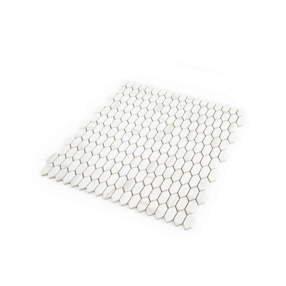 The Jeffrey Court Serenity Dolomite 11.125 in. x 11.875 in. Elongated Hex Matte White/Grey Glass Mosaic Wall/Floor Tile features a sleek matte glass finish in a stylish white and grey color palette. Its elongated hexagon pattern adds a modern and sophisticated touch to any space. Designed for versatile use, this tile is perfect for both walls and floors, enhancing residential and commercial interiors. With its water-resistant properties, it is ideal for moisture-prone areas such as bathrooms and kitchens. Plus, its stain-resistant surface ensures easy maintenance, making it a durable and elegant