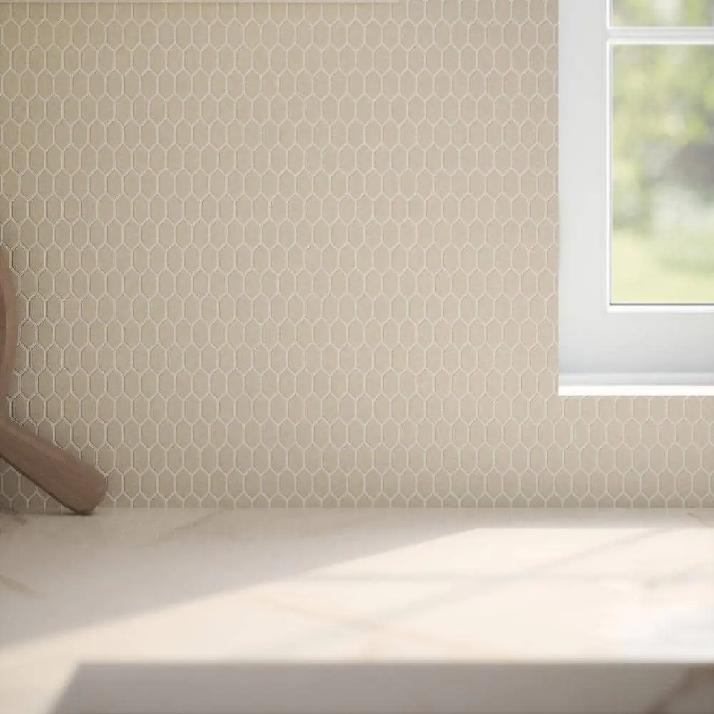 Transform your space with the Jeffrey Court Serenity Marfil 11.125 in. x 11.875 in. Elongated Hex Matte White/Beige Glass Mosaic Wall/Floor Tile. Featuring a unique elongated hexagonal shape and a beautiful combination of matte white and beige, this tile is perfect for creating a calm, serene atmosphere. With a coverage of 0.917 sq. ft. per piece, it's ideal for both wall and floor applications, adding versatility to your design. The stain and moisture-resistant surface ensures durability, while its matte finish gives a soft, modern touch to any room.