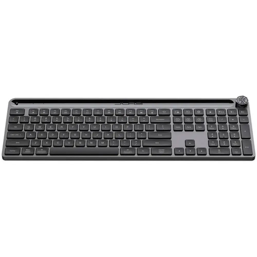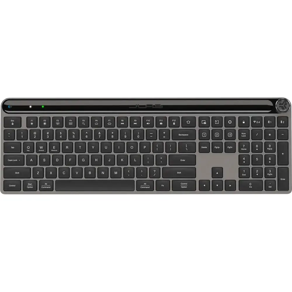 The JLab Epic Wireless Keyboard - Black offers a versatile typing experience with multi-device connection, allowing you to seamlessly switch between up to three devices via Bluetooth or a USB dongle. It features a rechargeable battery with convenient USB-C charging, ensuring long-lasting use without constant replacements. Designed for comfort, the quiet, low-profile keys provide a smooth and silent typing experience. Its compact, slim design makes it perfect for saving space on your desk, while customizable shortcuts enhance productivity. Plus, with adjustable tilt angles and compatibility with Windows, MacOS, ChromeOS, iOS, and Android, it’s a flexible solution for any setup