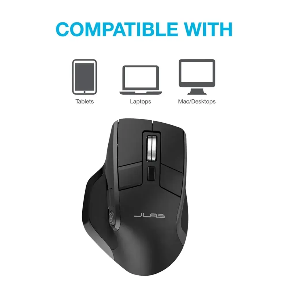 The JLab Epic Wireless Mouse offers wireless connectivity for a reliable and fast connection, ensuring seamless use. Its ergonomic design provides comfort for extended use, reducing strain on your hand. The precision sensor ensures accurate and responsive tracking for smooth navigation. With long battery life, it supports extended use, making it ideal for productivity. The sleek black design adds a modern, minimalistic touch, while its plug-and-play functionality allows for quick and easy setup with no additional software required