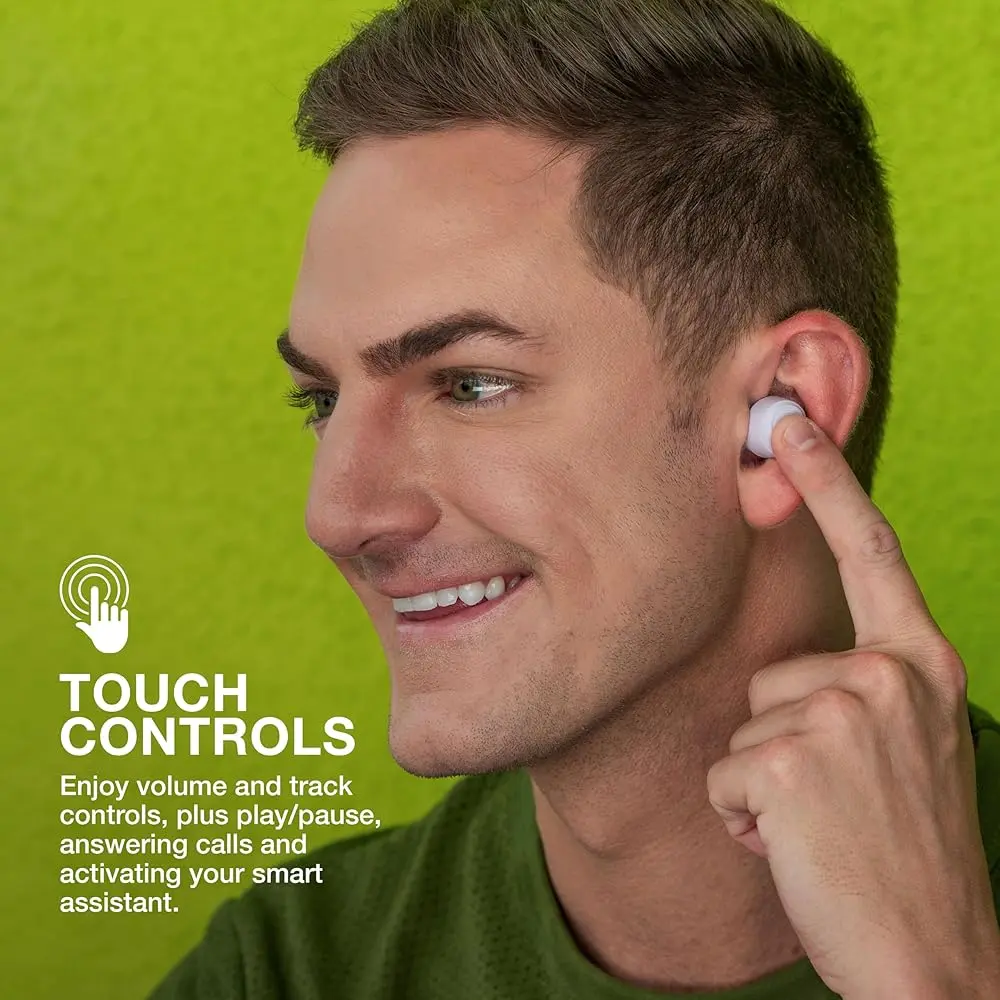 • Three EQ sound modes: JLab Signature, Balanced, and Bass Boost, controlled by touch sensors