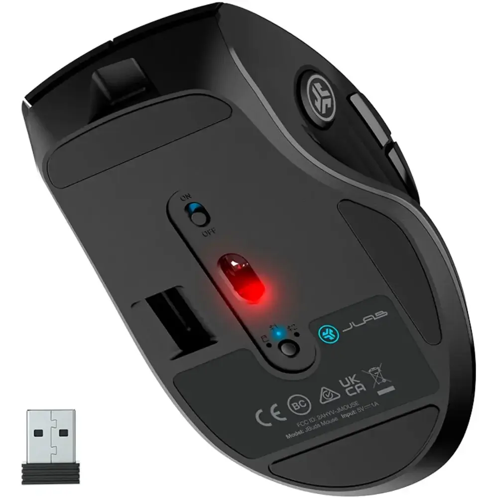The JBuds Wireless Bluetooth Mouse delivers full-sized functionality with a customizable and ergonomic design. Featuring seven silent buttons and the ability to save up to three user profiles, this mouse is built for efficiency and convenience. Easily switch between devices using Bluetooth 5.2 or USB, and enjoy an eco-friendly rechargeable battery that lasts 4+ months on a single charge.