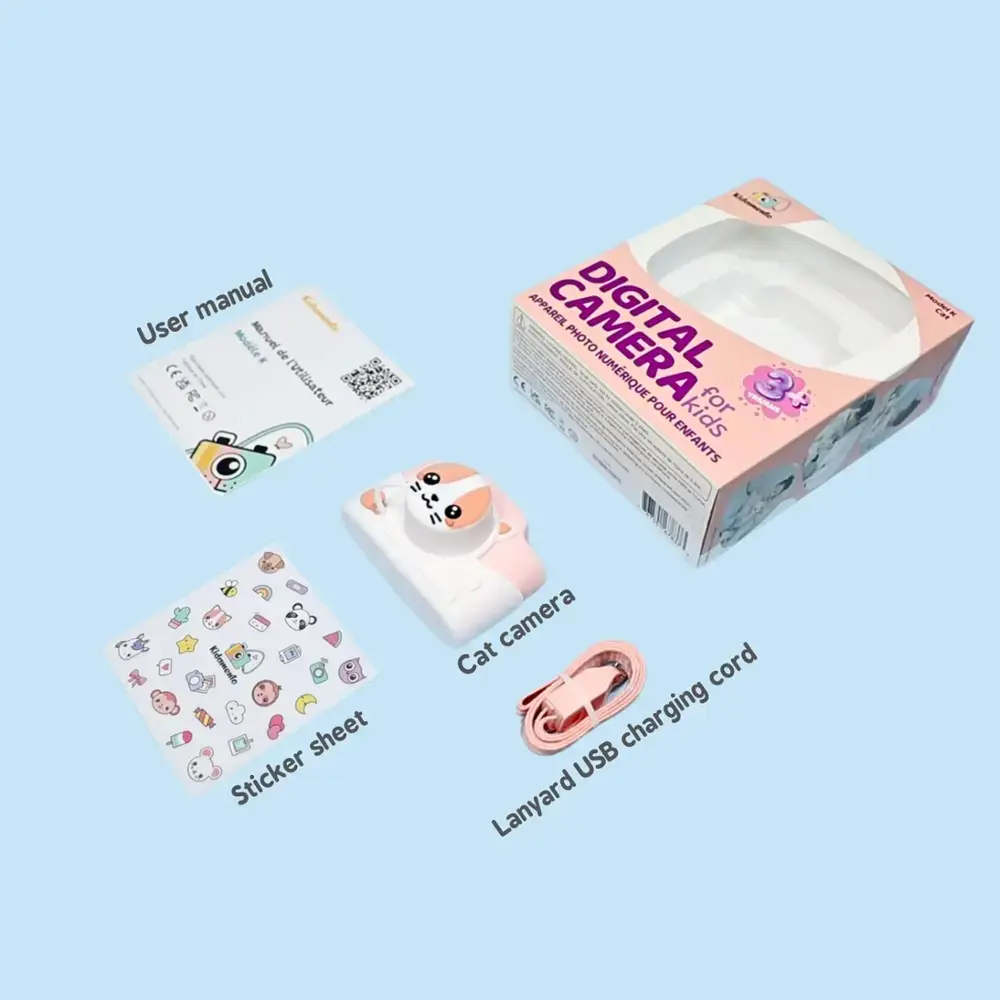 The Kidamento Model K is the ideal camera for children aged 3 to 9, designed to nurture their creativity while having fun. This child-friendly digital camera features a playful Meowie the Cat design, making it the perfect companion for little photographers. Meowie, the adorable princess of the Model K series, is ready to join your child on endless photo adventures.