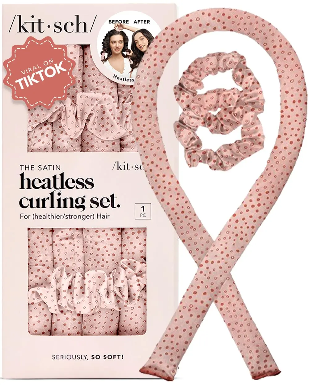 ACHIEVE VOLUMINOUS CURLS: Create beautiful, voluminous curls without heat damage! Our heatless curl headband provides classic curls or waves, using silky satin for gentle overnight styling.SUITABLE FOR ALL HAIR TYPES: Perfect for straight, wavy, long, or medium-length hair, this versatile curler is ideal for teens and adults. Check our size chart for the best fit!PROTECT YOUR HAIR: The Kitsch Overnight Hair Curler safeguards against heat damage. The set includes a curling rod and two satin scrunchies, all wrapped in premium satin for smooth, frizz-free curls.EASY TO USE: Simply wrap your hair around the rod, secure with the scrunchies, and let it work overnight or while air-drying. Watch our videos for tips on flawless curls!GREAT GIFT: The Kitsch Sleep Curlers make a thoughtful gift for any occasion. Measuring 3.5 inches wide and 8.5 inches high, theyre comfortable and deliver stunning results!