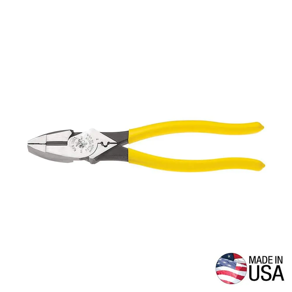 The Klein Tools 9 in. High Leverage Side Cutting Pliers with Crimping Die are designed for maximum cutting power with their high leverage design, allowing for more cutting force with less effort. The 9-inch size offers a comfortable grip, providing better control during use. These pliers feature an integrated crimping die, making them perfect for crimping terminals and connectors. Constructed from high-quality steel, they ensure long-lasting durability, while their precision cutting ability is ideal for tight spaces. The ergonomic handles provide comfort and reduce hand fatigue during extended use.