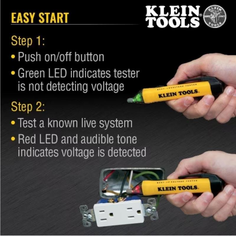 Klein Tools Digital Non-Contact Voltage and GFCI Receptacle Test Kit is a versatile and essential toolset for electrical testing and troubleshooting. Contents: Digital Non-Contact Voltage Tester: Type: Non-contact voltage tester. Function: Detects the presence of AC voltage without making direct contact with live wires. Ideal for checking outlets, wires, and electrical devices. Features: Digital Display: Provides clear and precise voltage readings. Voltage Range: Typically covers a wide range of voltages (e.g., 12-1000V AC). Audible Alerts: Beeps when voltage is detected. LED Indicators: May include LED lights to show the presence and strength of the voltage. Integrated Flashlight: For visibility in dark or confined spaces. GFCI Receptacle Tester: Type: GFCI (Ground Fault Circuit Interrupter) receptacle tester. Function: Tests the functionality of GFCI outlets and checks for common wiring issues. Verifies proper wiring and operation of GFCI outlets. Features: LED Indicators: Show the status of the outlet and help diagnose wiring problems such as open ground, open neutral, and reversed wiring. GFCI Testing: Can test the trip and reset functions of GFCI outlets to ensure they are working properly. General Features: Durability: Designed to withstand regular use in various environments. The tools are often rugged and built to last. Ease of Use: User-friendly, with intuitive controls and clear displays that make it easy to use for both professionals and DIY enthusiasts. Safety: Features such as insulated probes, overload protection, and safety ratings ensure safe operation during testing. Use Cases: Voltage Tester: Useful for detecting the presence of live voltage in wires, outlets, and electrical equipment without making direct contact. Ideal for safely checking if circuits are energized or de-energized. GFCI Tester: Essential for ensuring that GFCI outlets are functioning correctly and providing protection against ground faults. Helps verify proper wiring and operation of outlets to prevent electrical hazards. This test kit is an invaluable tool for electricians and homeowners to ensure electrical systems are safe, functional, and properly maintained.