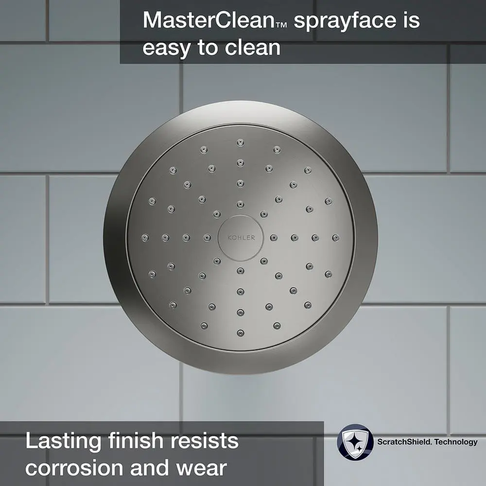Elevate your shower experience with the exclusive KOHLER Forte Single-Function Showerhead in Vibrant Brushed Nickel, designed for luxury and innovation. Featuring cutting-edge Katalyst technology, this water-saving showerhead intensifies water flow, maximizing every drop for a rich and indulgent experience. By infusing air into the water, it delivers a powerful spray that clings to your body with larger, fuller droplets. Combining classic style with consistent performance, this showerhead provides a soft, silky spray for every shower.