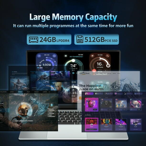 KUU 15.6" Laptop, Intel Celeron, 24GB RAM, 512GB SSD, FHD 1080p, Windows 11