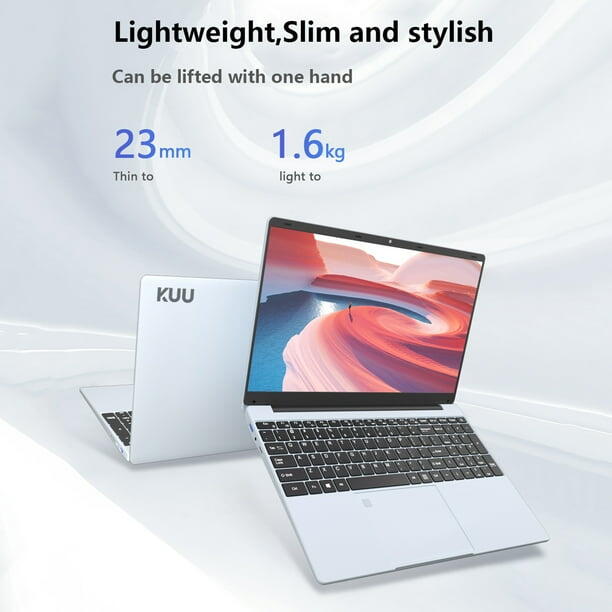 KUU 15.6" Laptop, Intel Celeron N5095, 16GB RAM, 512GB SSD, FHD, Backlit Keyboard, Silver