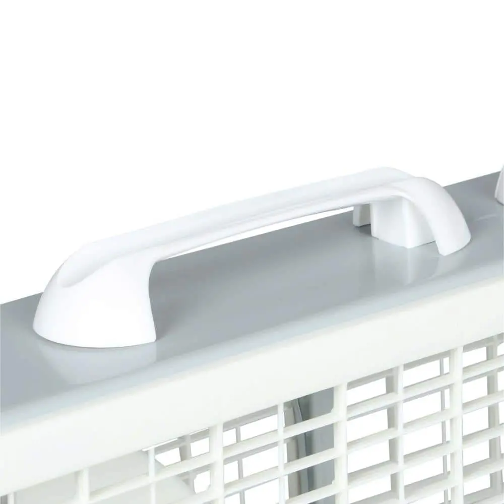 The Lasko Slim 20" Box Fan offers three quiet speeds for powerful air circulation. Its slim design and rounded corners ensure safety while allowing for versatile placement in any room. Whether placed in a window, on the floor in a bedroom, living room, or office, this fan fits effortlessly into any space. You can also pair it with an air conditioner to enhance cooling airflow. With the Save-Smart design, it costs less than 2 cents per hour to run! Featuring Lasko's trusted fused safety plug and requiring no tools for assembly.