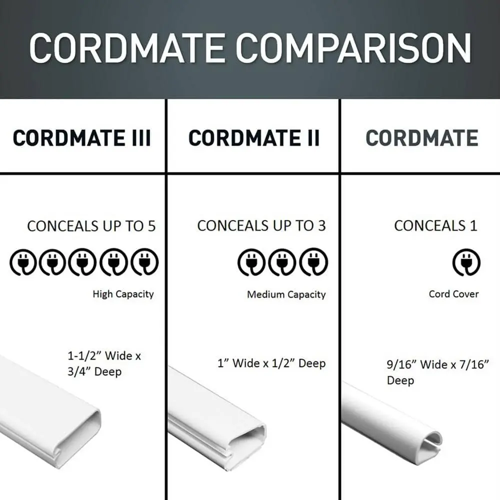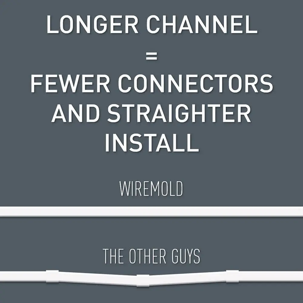 Eliminate cable clutter with the Wiremold CordMate III High-Capacity Channel, designed to neatly conceal large bundles of cords and wires. Perfect for home entertainment systems, speaker setups, and office wiring, this versatile solution keeps your space organized and stylish. Compatible with optional accessory fittings for a complete and customizable project.