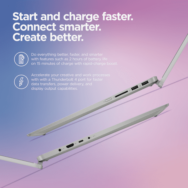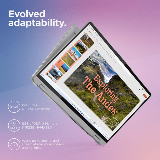 The Lenovo IdeaPad Flex 5i offers versatile performance and creativity with its innovative 360° drop-down hinge that lifts the keyboard for more comfortable typing and a larger screen. Powered by the 12th Generation Intel® Core™ i7 processor and Intel integrated graphics, it provides smooth performance for both work and play. Enjoy stunning visuals on a 16:10 aspect ratio 1920 x 1200 WUXGA touch display, and enhance your connectivity with Thunderbolt™ 4.0, allowing you to connect up to two 4K displays for an ultra-fast and seamless experience.
