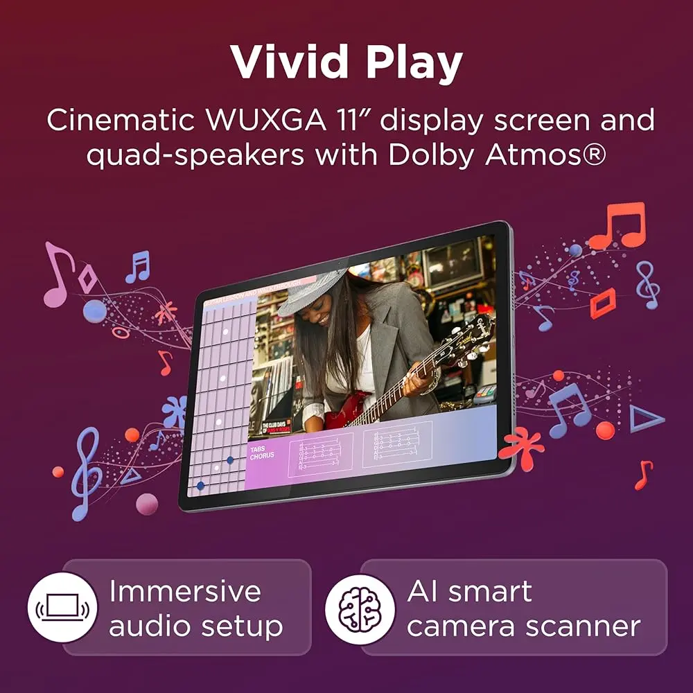 The Lenovo Tab M11 offers a perfect blend of performance, portability, and premium features. Powered by the MediaTek Helio G88 Octa-Core processor and 4GB RAM, it delivers smooth performance for both work and entertainment. The 11 (28 cm) 1920x1200 WUXGA display provides vibrant, sharp visuals, perfect for streaming, gaming, or browsing. With 128GB SSD storage, you can easily manage multiple apps and files without slowdowns. The tablet includes a built-in ambient light sensor for optimized viewing in any lighting condition. Enjoy up to 10 hours of battery life for uninterrupted use, whether working or relaxing. Additionally, the tablet comes with a folio case for added protection, all wrapped in a sleek Luna Grey finish.