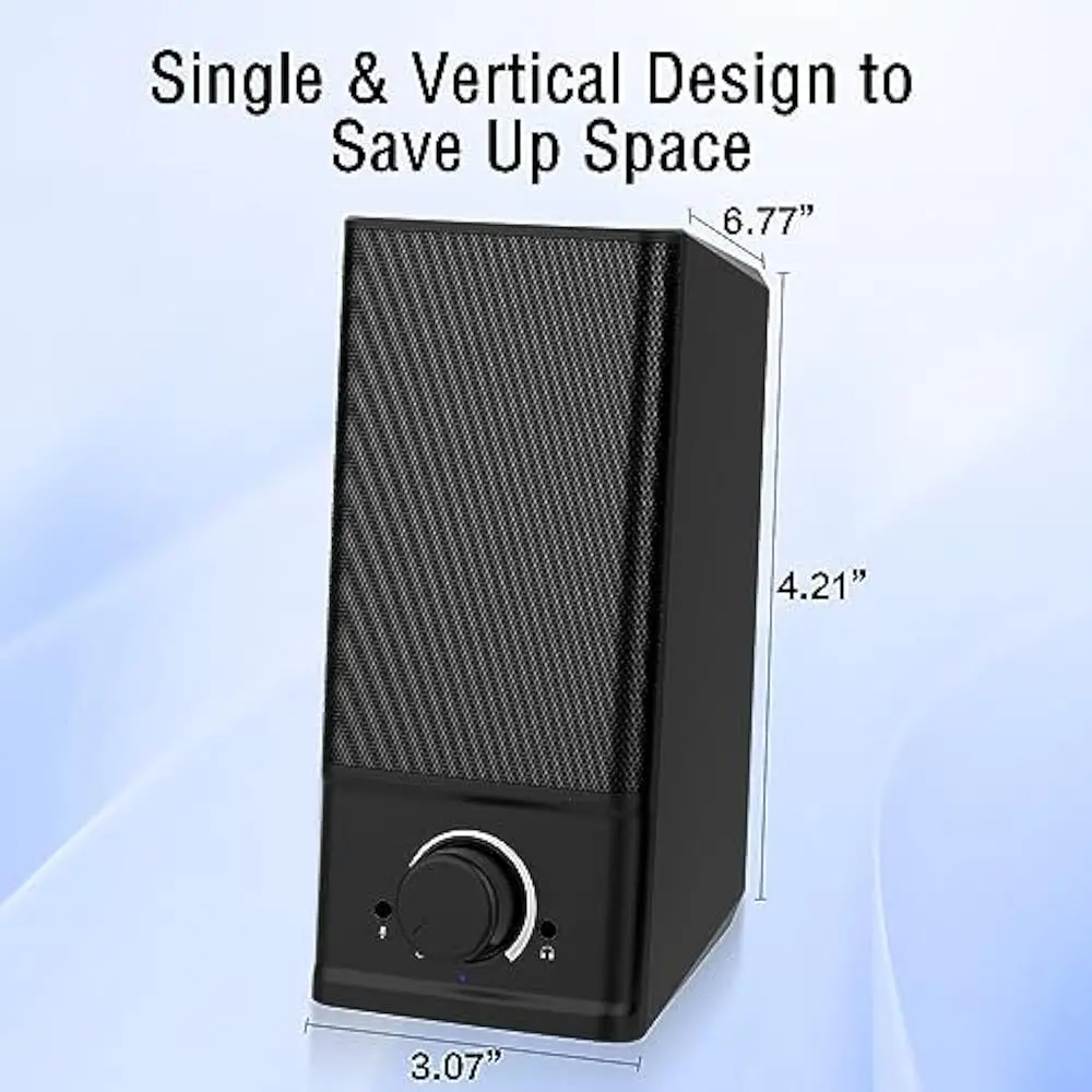 The LENRUE A4 Solo Speaker is a compact, plug-and-play audio boost for your desktop or laptop. With a single USB cable for power and audio, it delivers clear sound and supports 3.5mm headphones and microphones. Simple controls and wide compatibility make it perfect for easy, no-fuss listening.