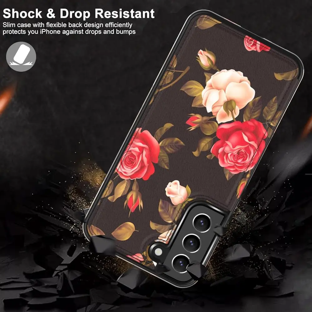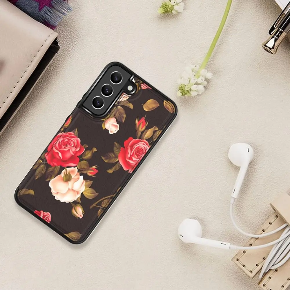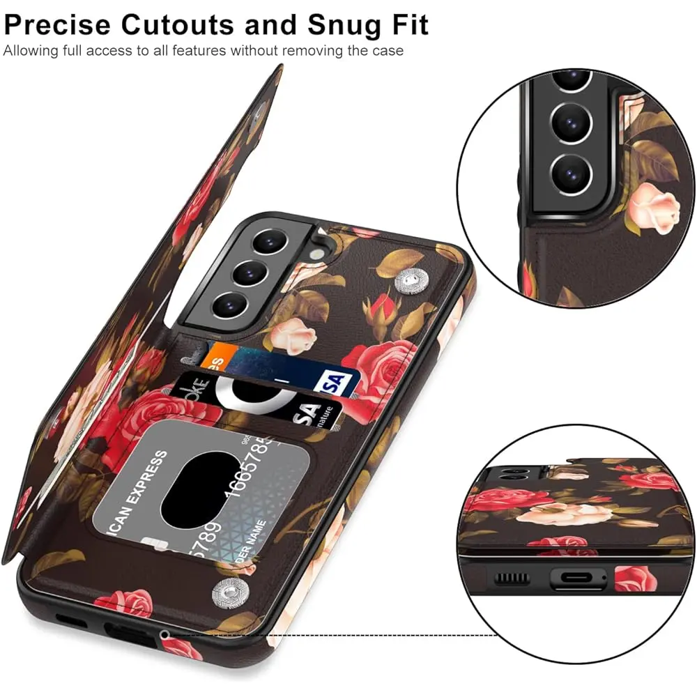 LETO Galaxy S22 Case,Luxury Flip Folio Leather Wallet Case Cover 6.1" Blooming Florals